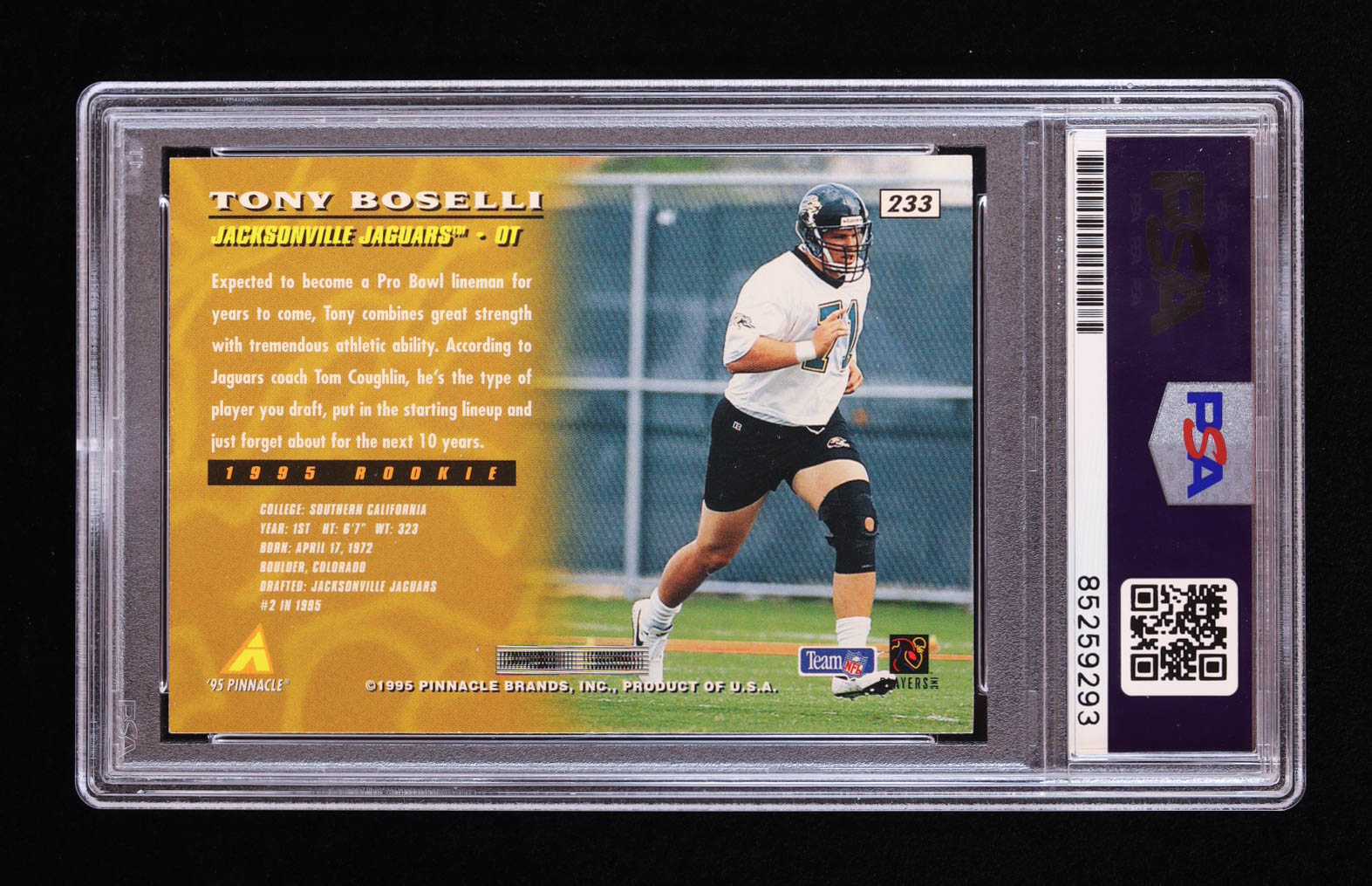 Tony Boselli Signed 1995 Pinnacle #233 (PSA)