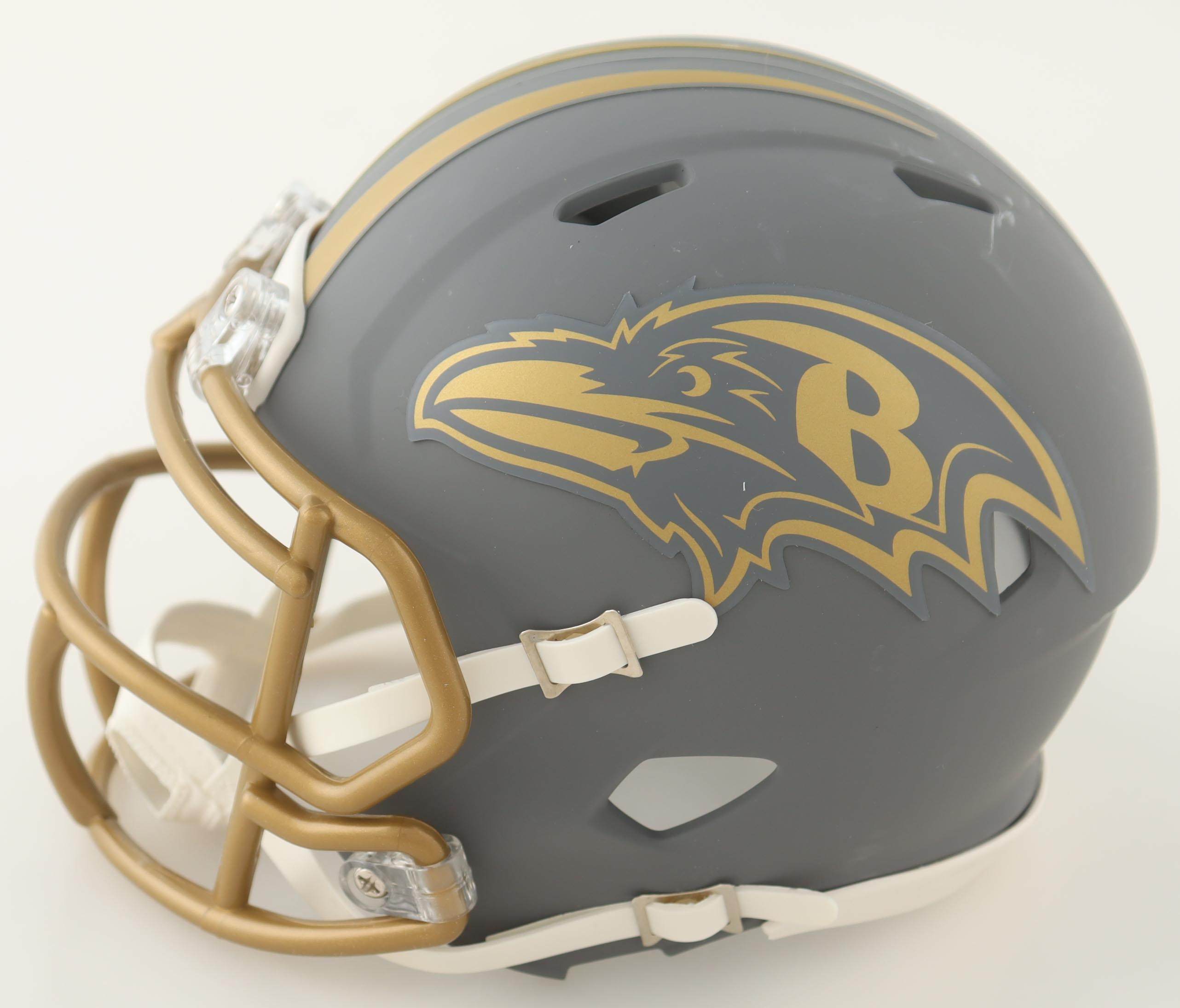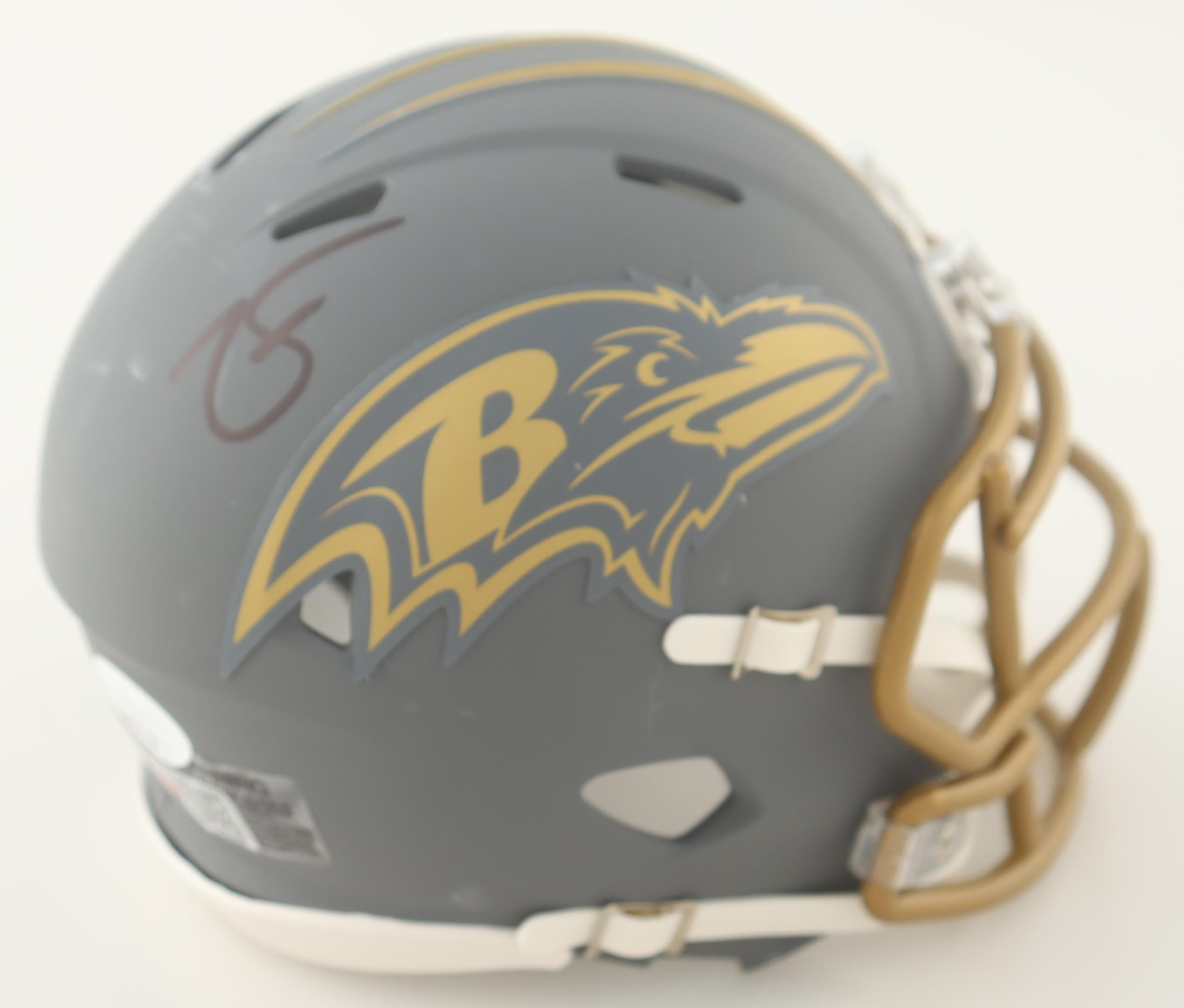 Riddell Baltimore Ravens Slate Alternate Speed mini helmet. Hand-signed by Zay Flowers.