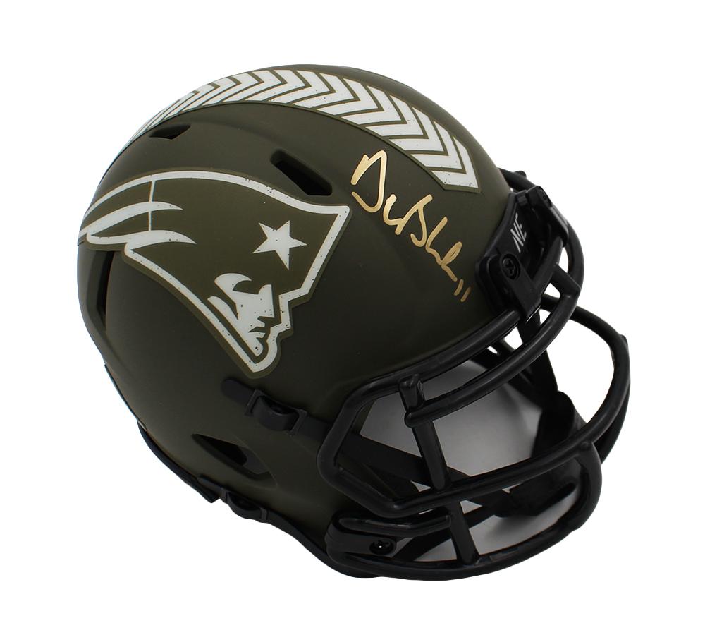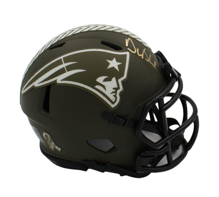 Riddell New England Patriots Salute to Service Speed Mini Helmet hand-signed by Drew Bledsoe.