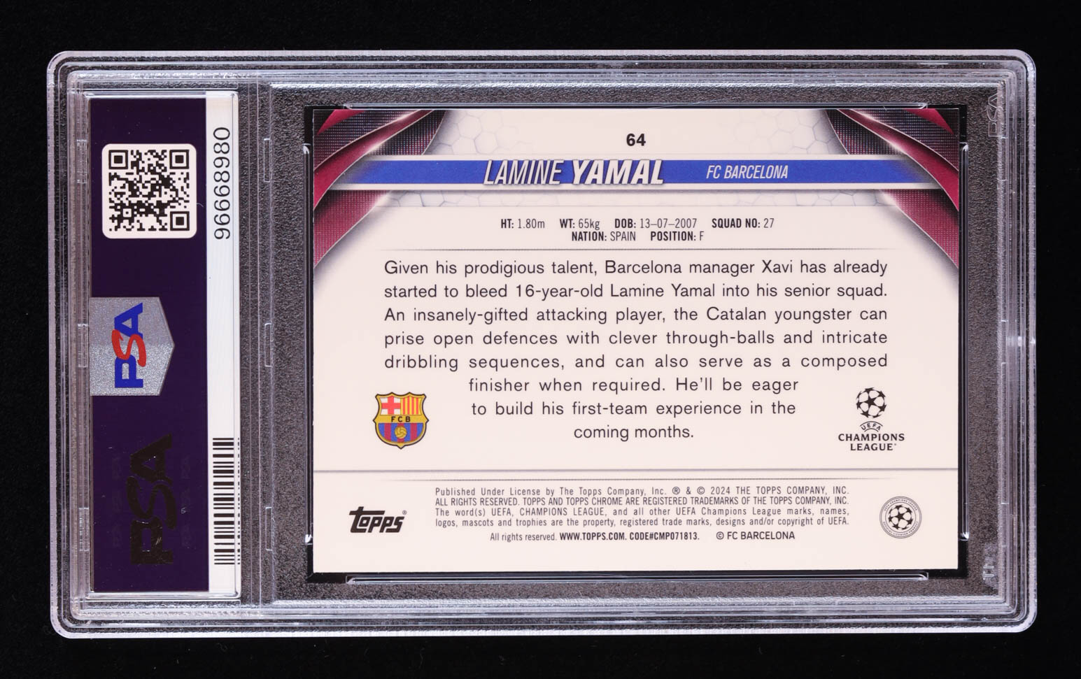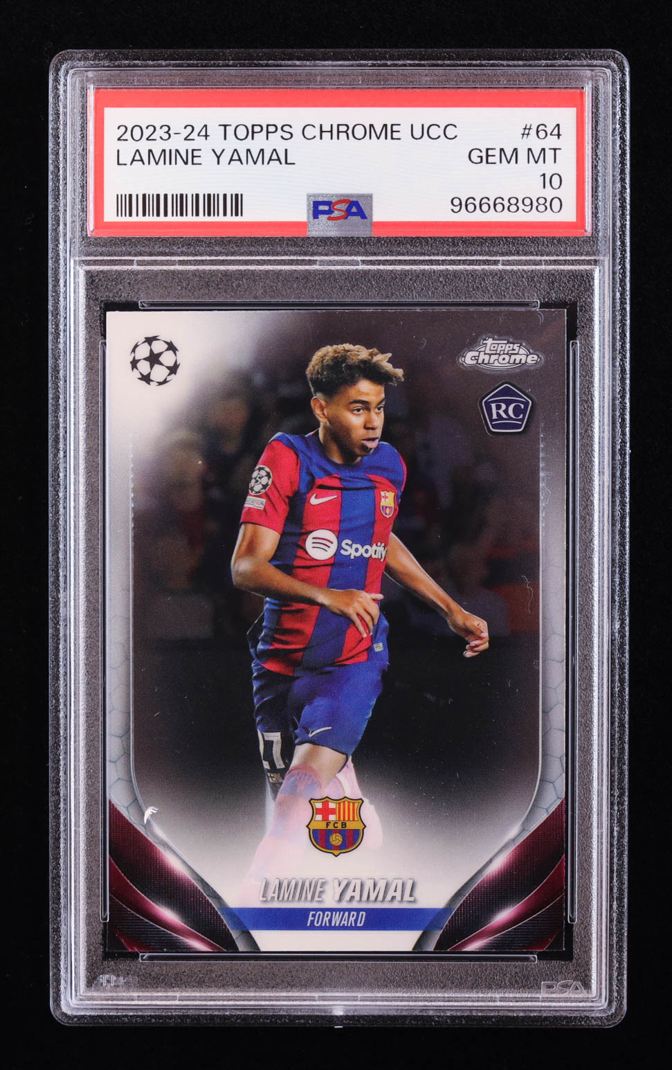 Lamine Yamal 2023-24 Topps Chrome UEFA Club Competitions #64 RC (PSA 10)