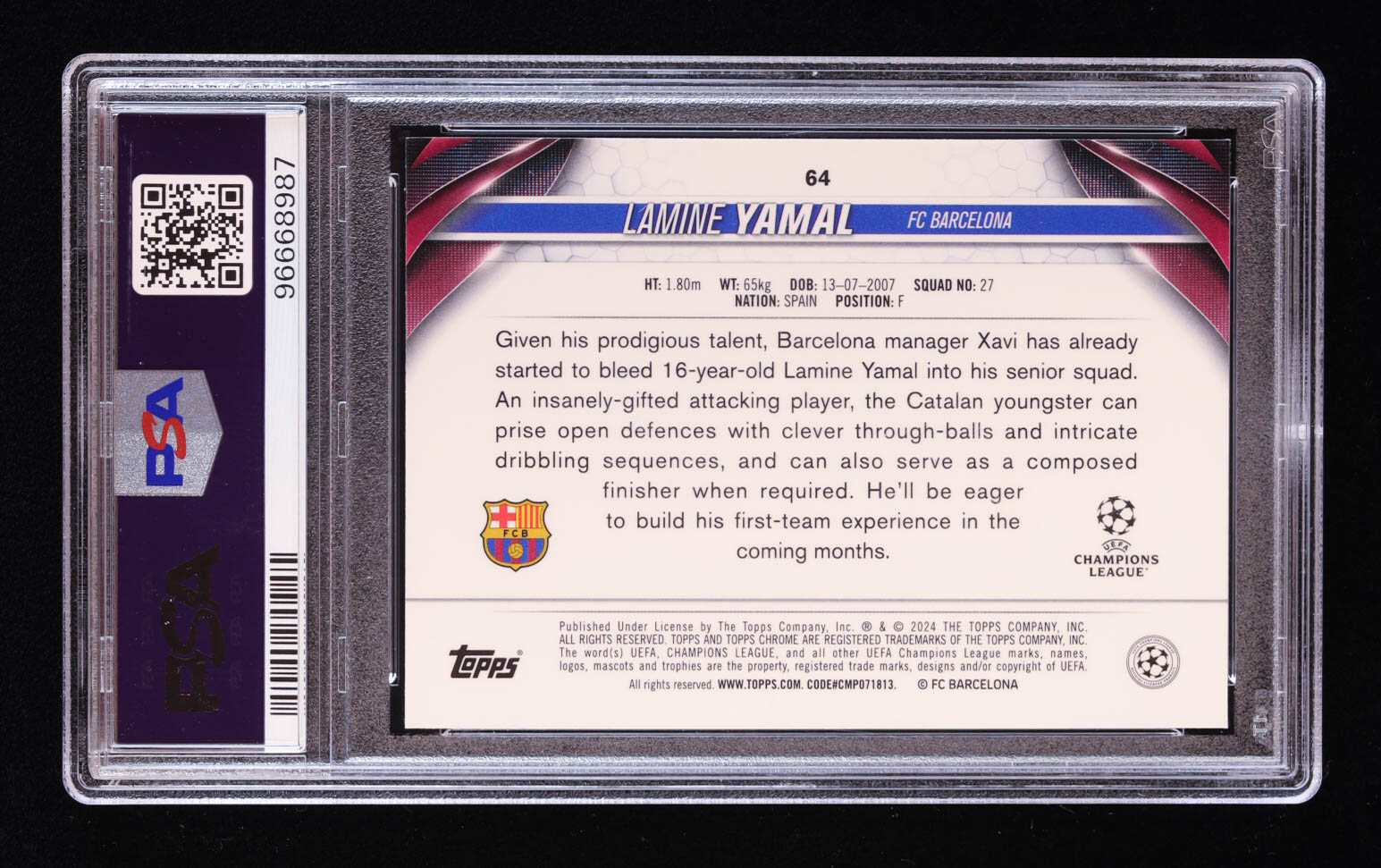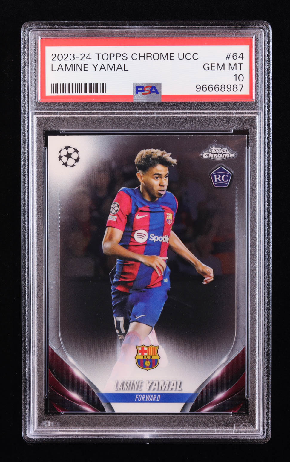 Lamine Yamal 2023-24 Topps Chrome UEFA Club Competitions #64 RC (PSA 10)