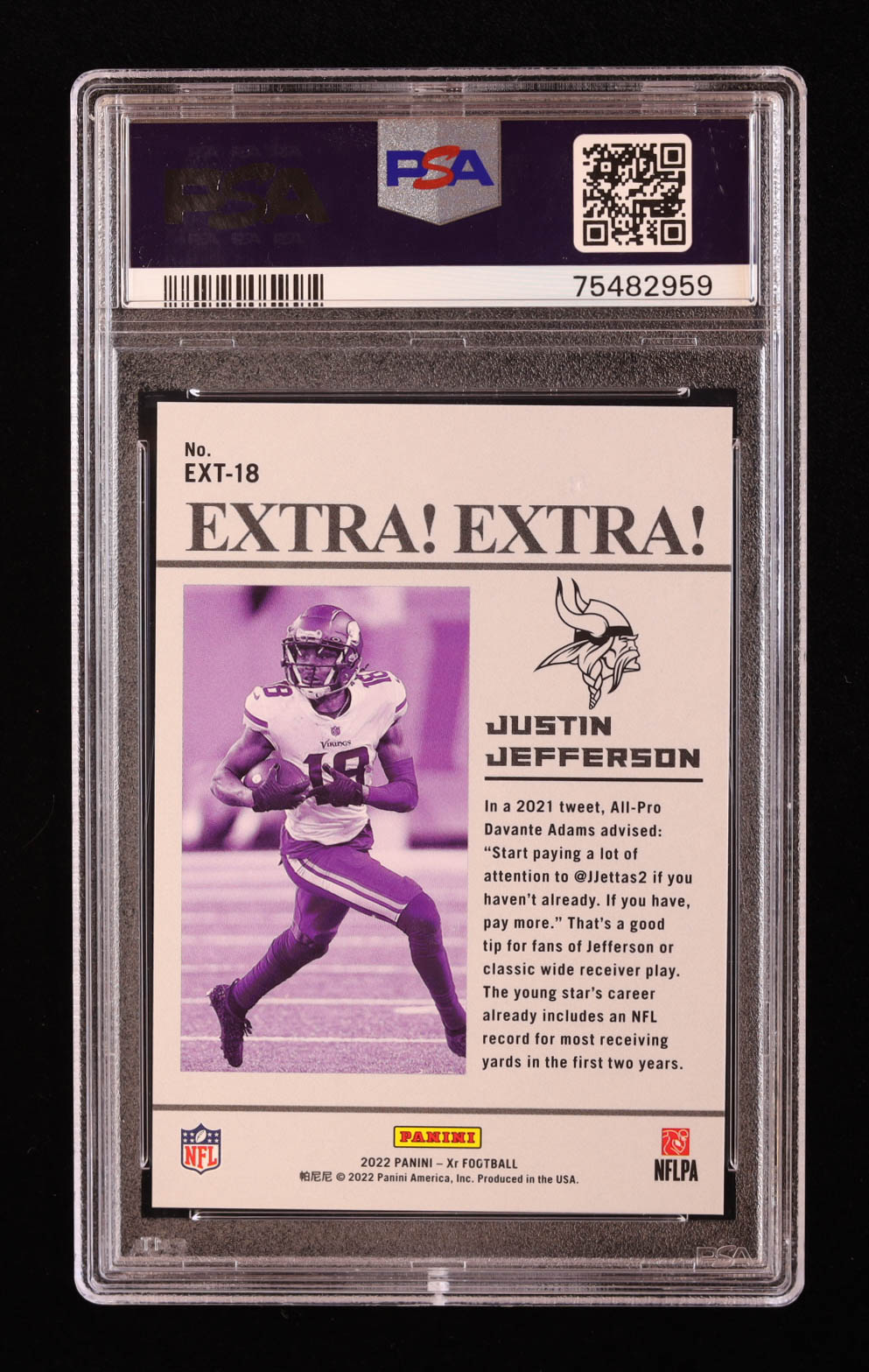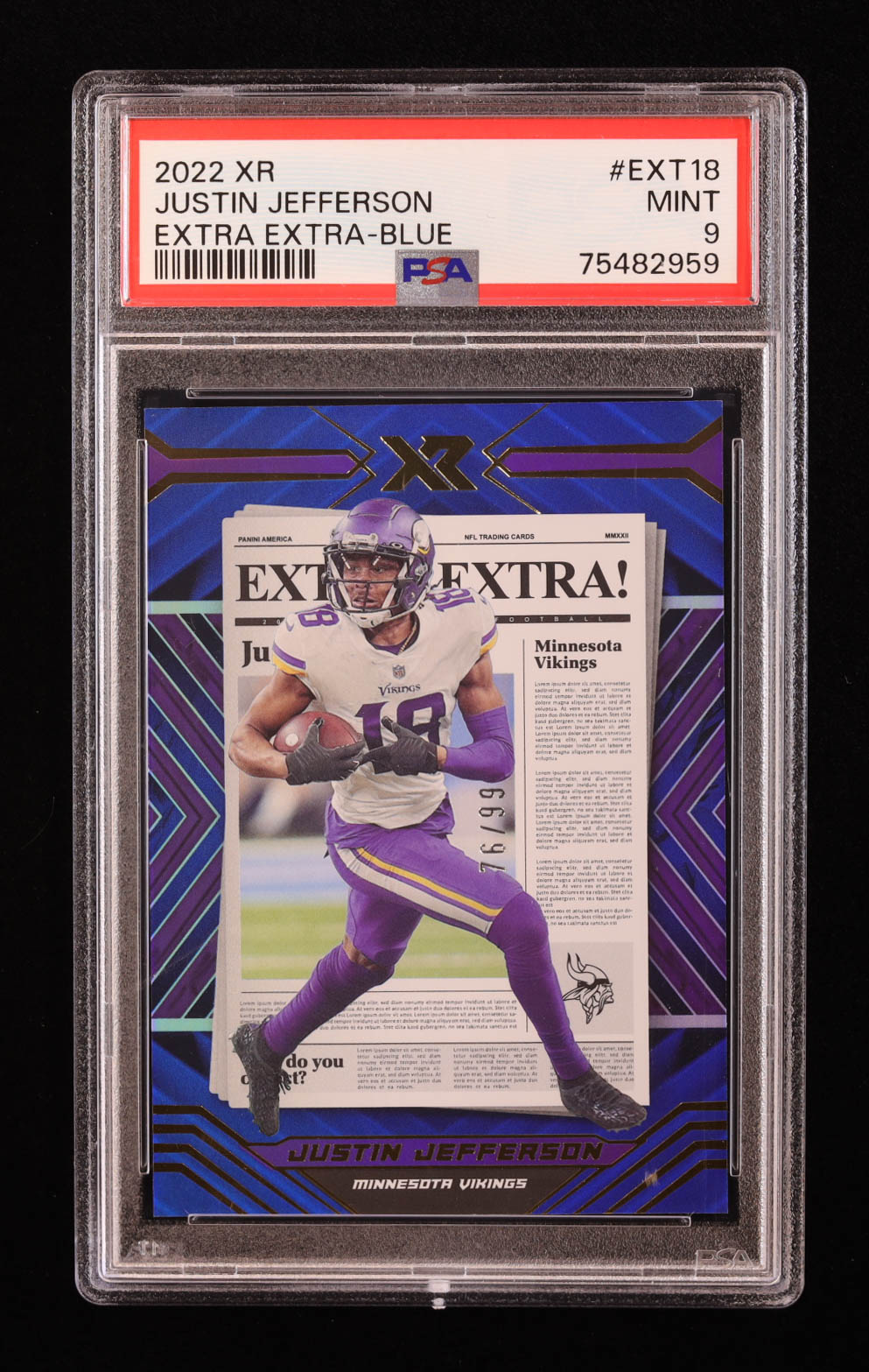 Justin Jefferson 2022 Panini XR Extra Extra Blue #18 #76/99 (PSA 9)