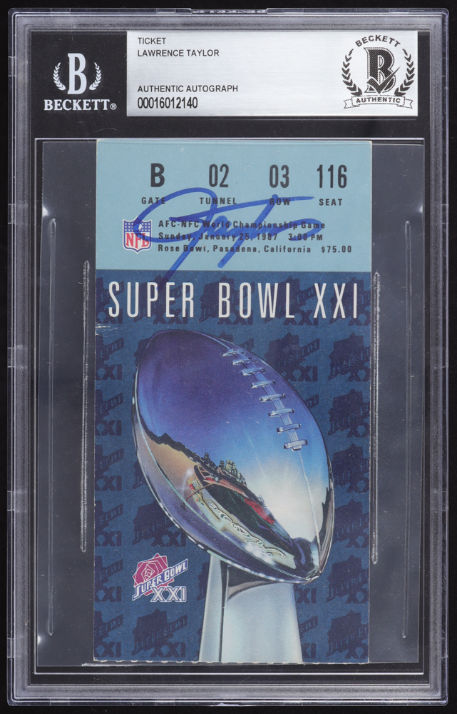 Lawrence Taylor Signed 1987 Super Bowl XXI Ticket (BAS)