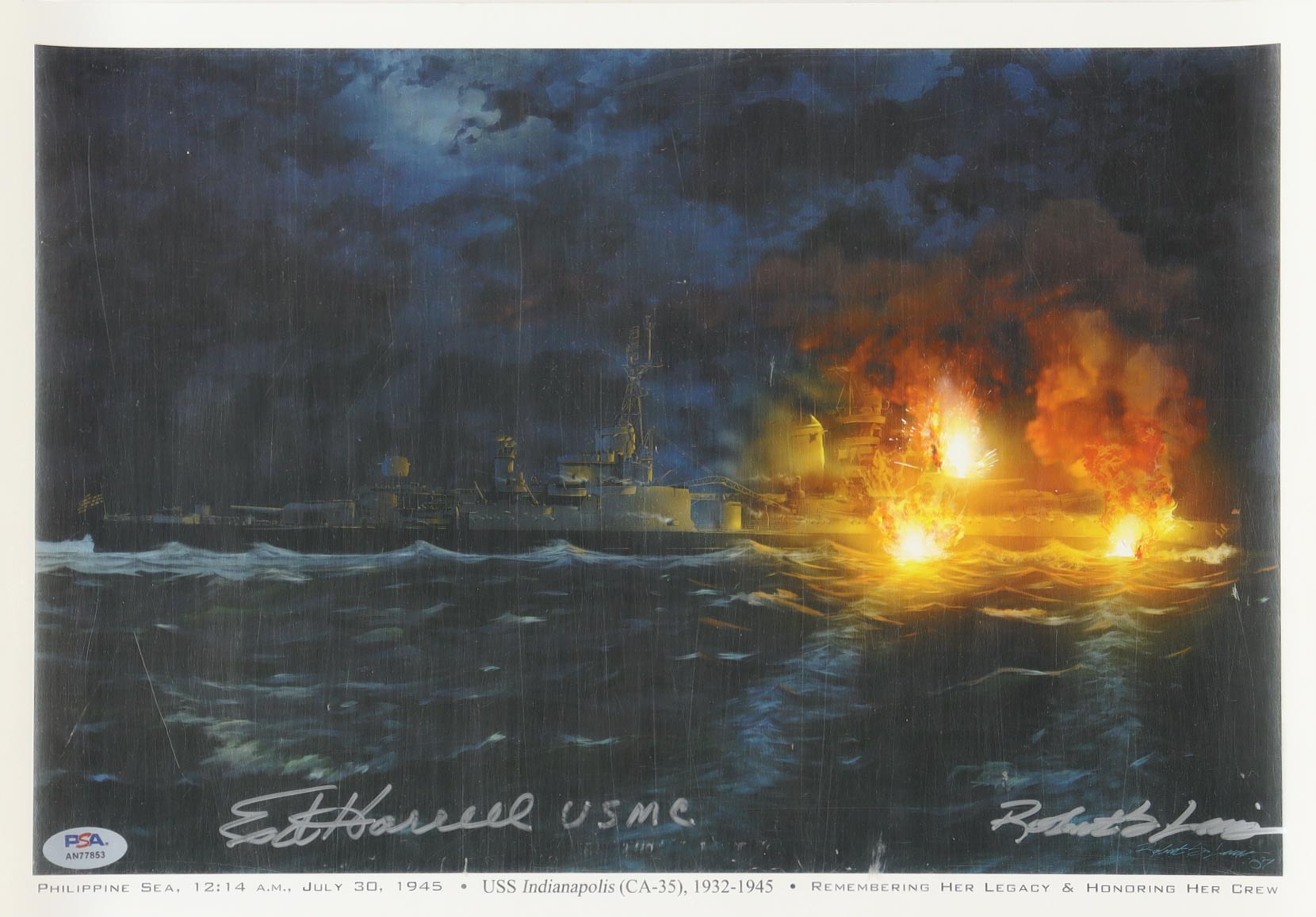 Robert Lewis & Edgar Harrell Signed "USS Indianapolis (CA-35)" Lithograph (PSA)