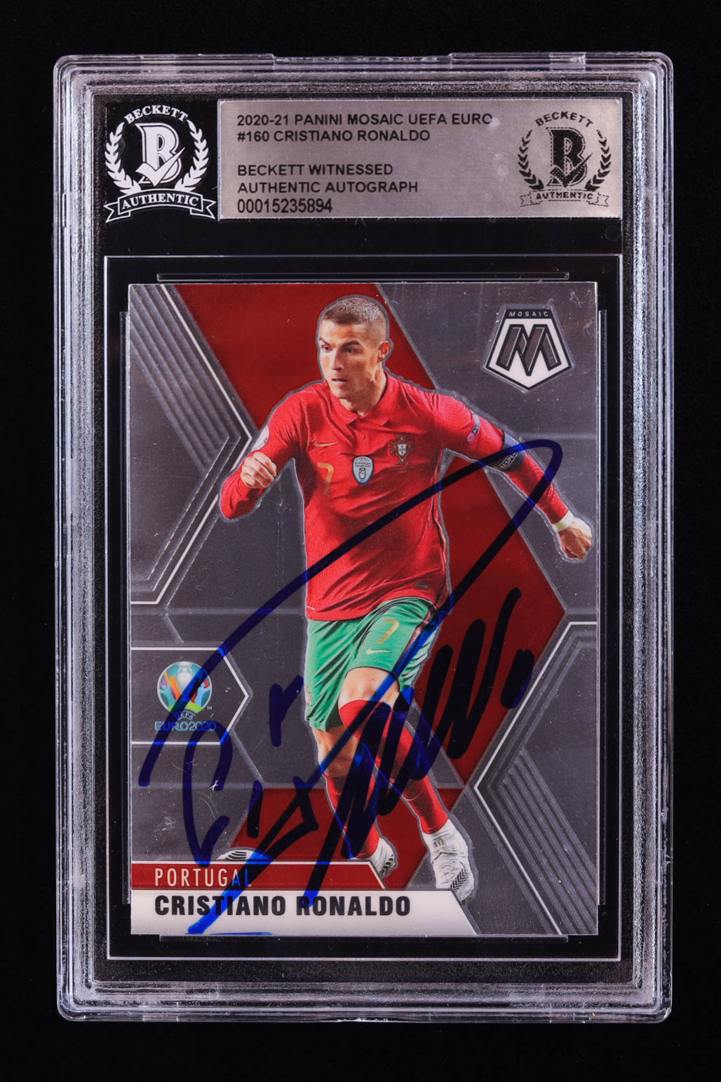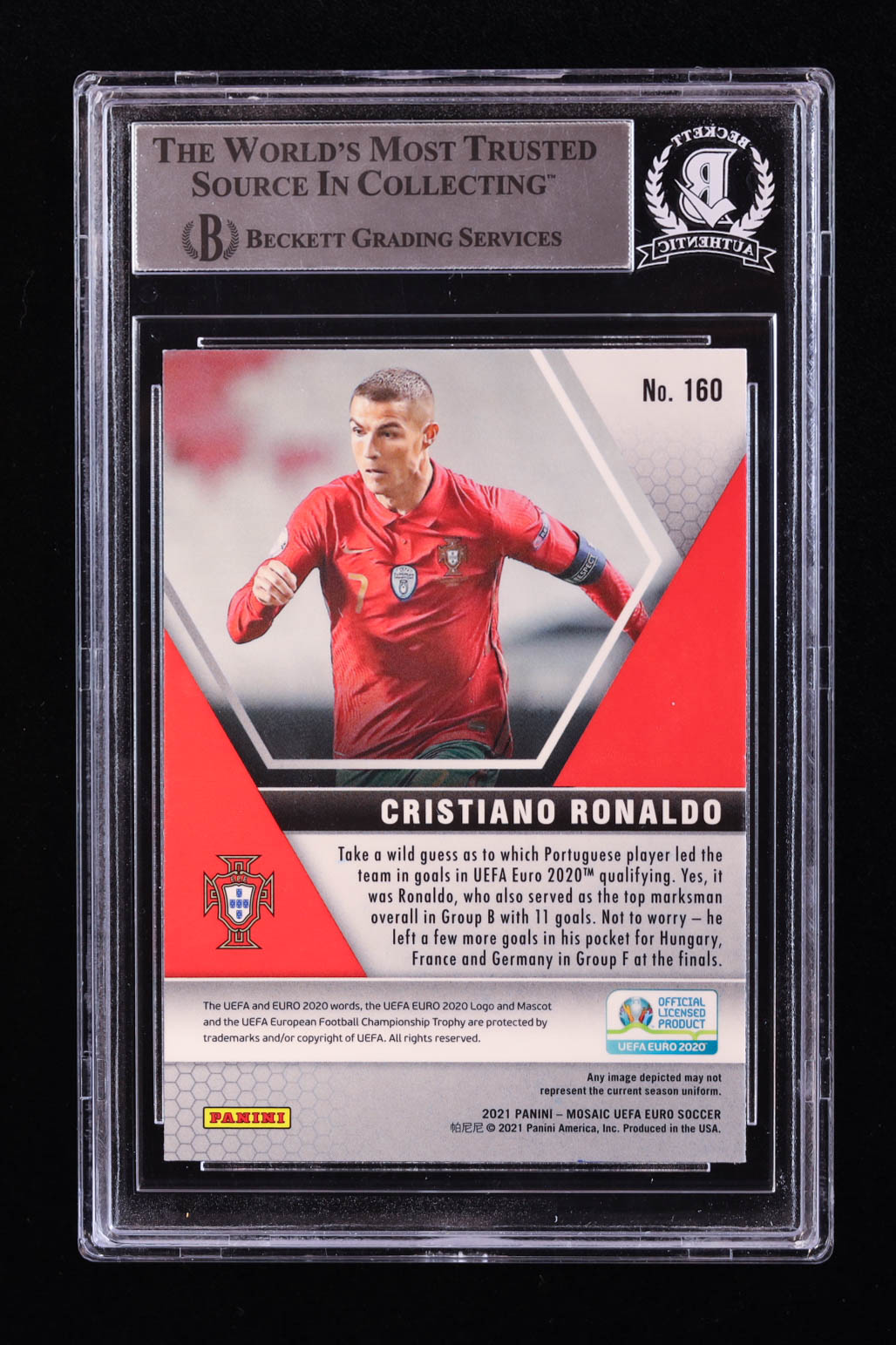 Cristiano Ronaldo Signed 2020-21 Panini Mosaic UEFA Euro #160 (BGS)