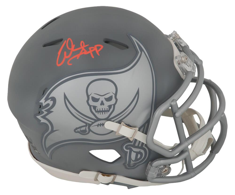 Riddell Tampa Bay Buccaneers Slate alternate speed mini helmet. Hand-signed by Warren Sapp (HOF).
