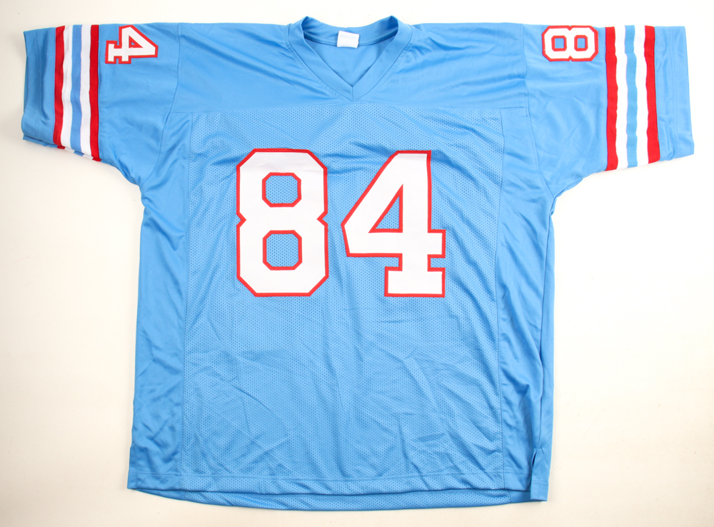 Custom football jersey. Everything sewn on, size XL. Hand-signed by Haywood Jeffires.