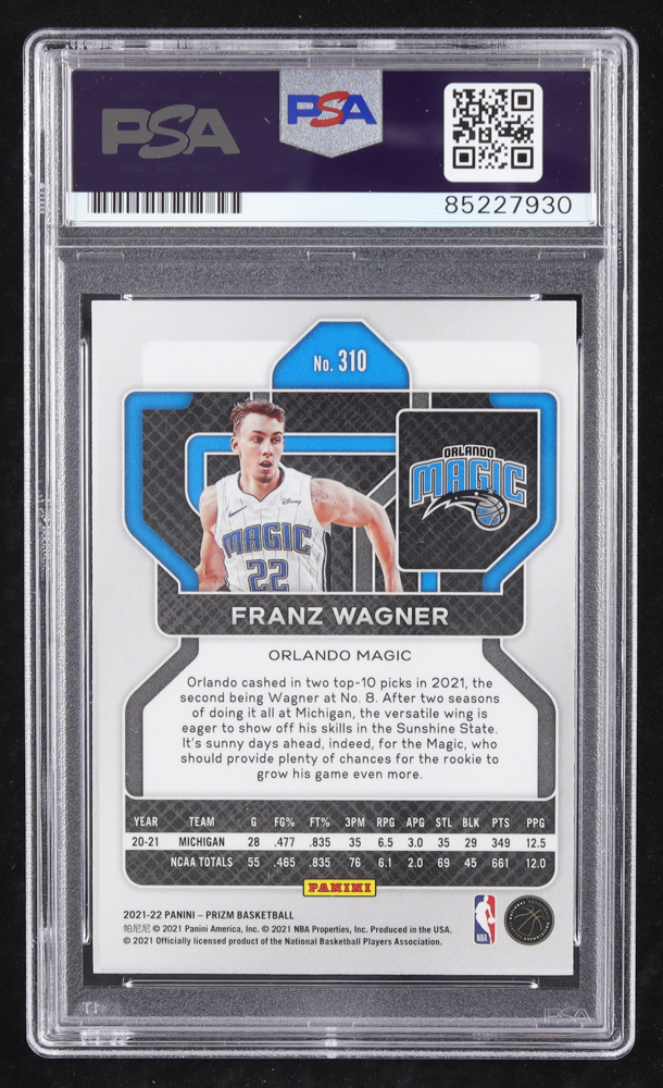 Franz Wagner Signed 2021-22 Panini Prizm #310 RC (PSA | Autograph Graded PSA 10)