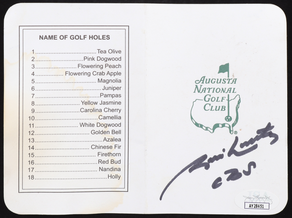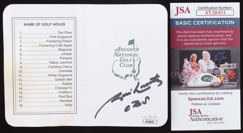 Score card has been hand-signed and inscribed by Jim Nantz. Please note, there is scuffing, staining and wrinkling on the score card.