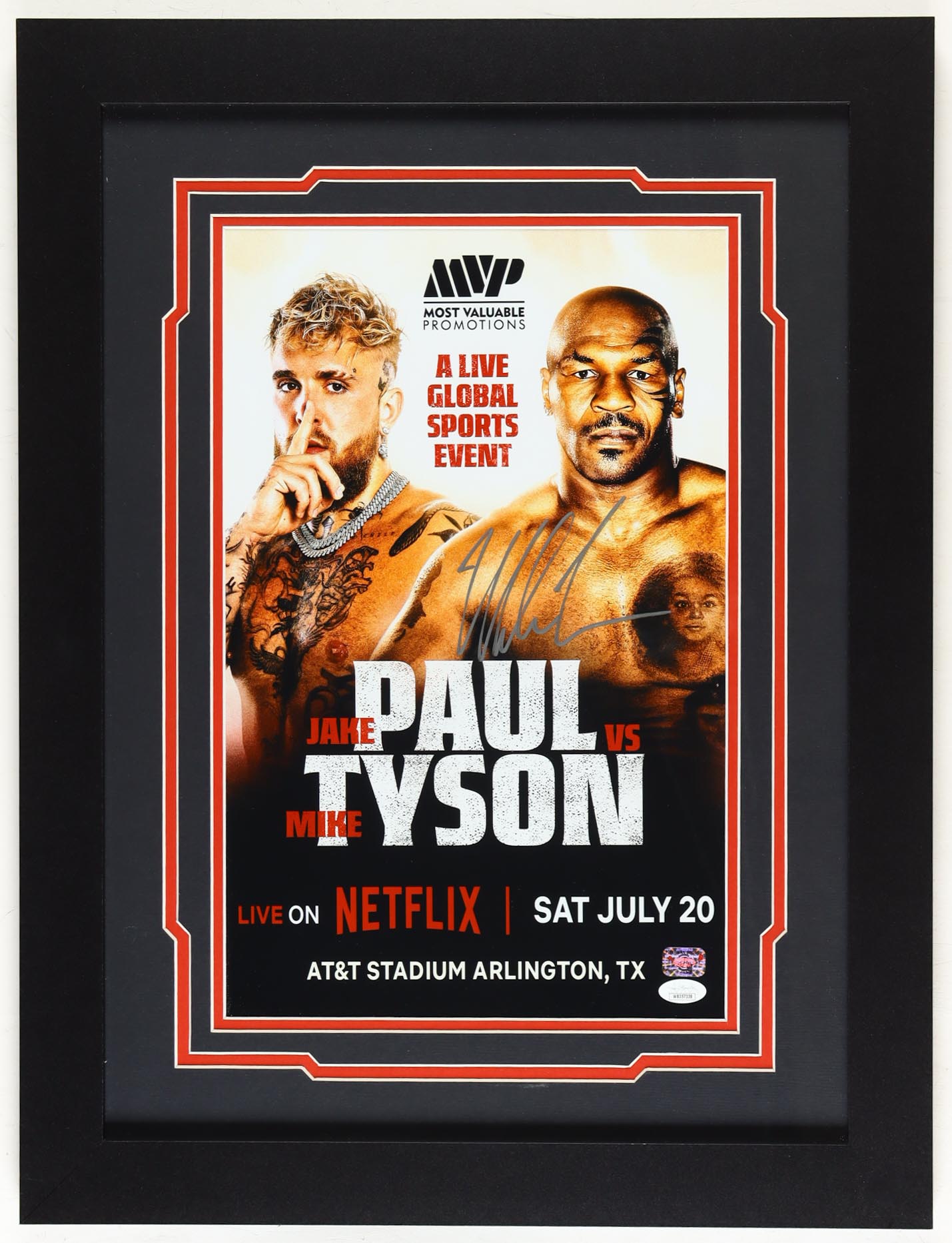 Mike Tyson Signed "Paul vs Tyson" Netflix Custom Framed Poster Print Display (JSA & Tyson)