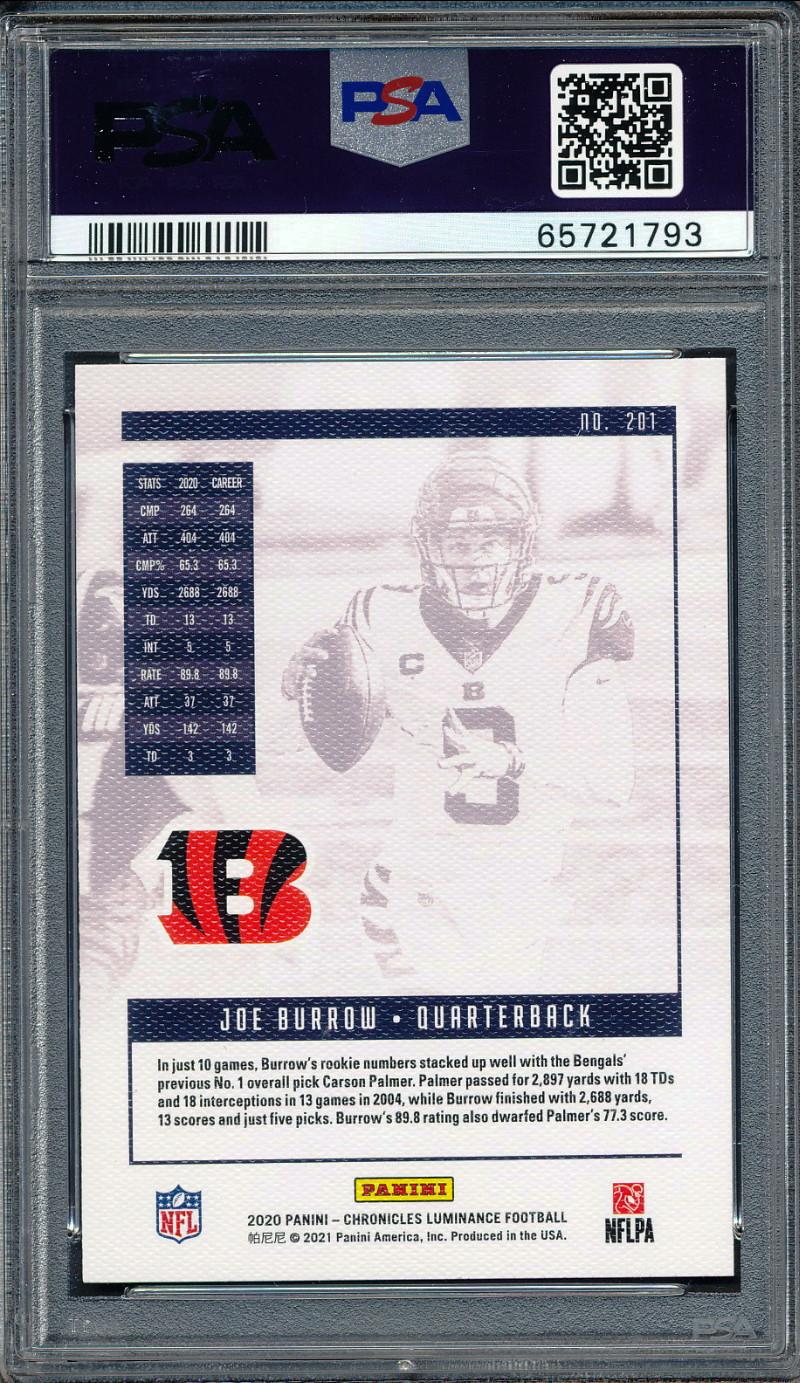 Joe Burrow 2020 Panini Luminance #201 Chronicles RC (PSA 10)