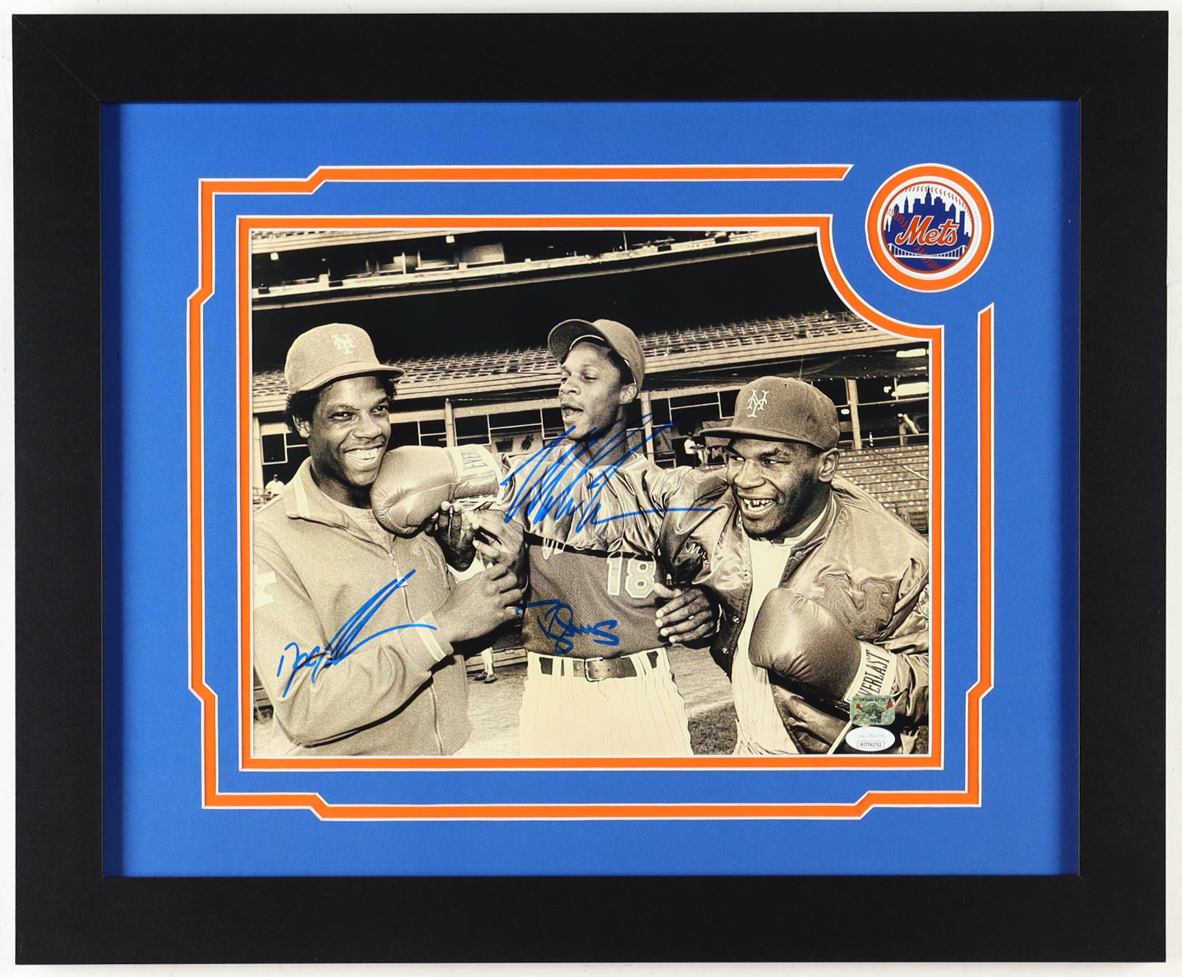 Custom framed display measures 19" x 23" in size and features a photo that has been hand-signed by Mike Tyson (HOF), Dwight Gooden (New York Mets) and Darryl Strawberry (New York Mets).