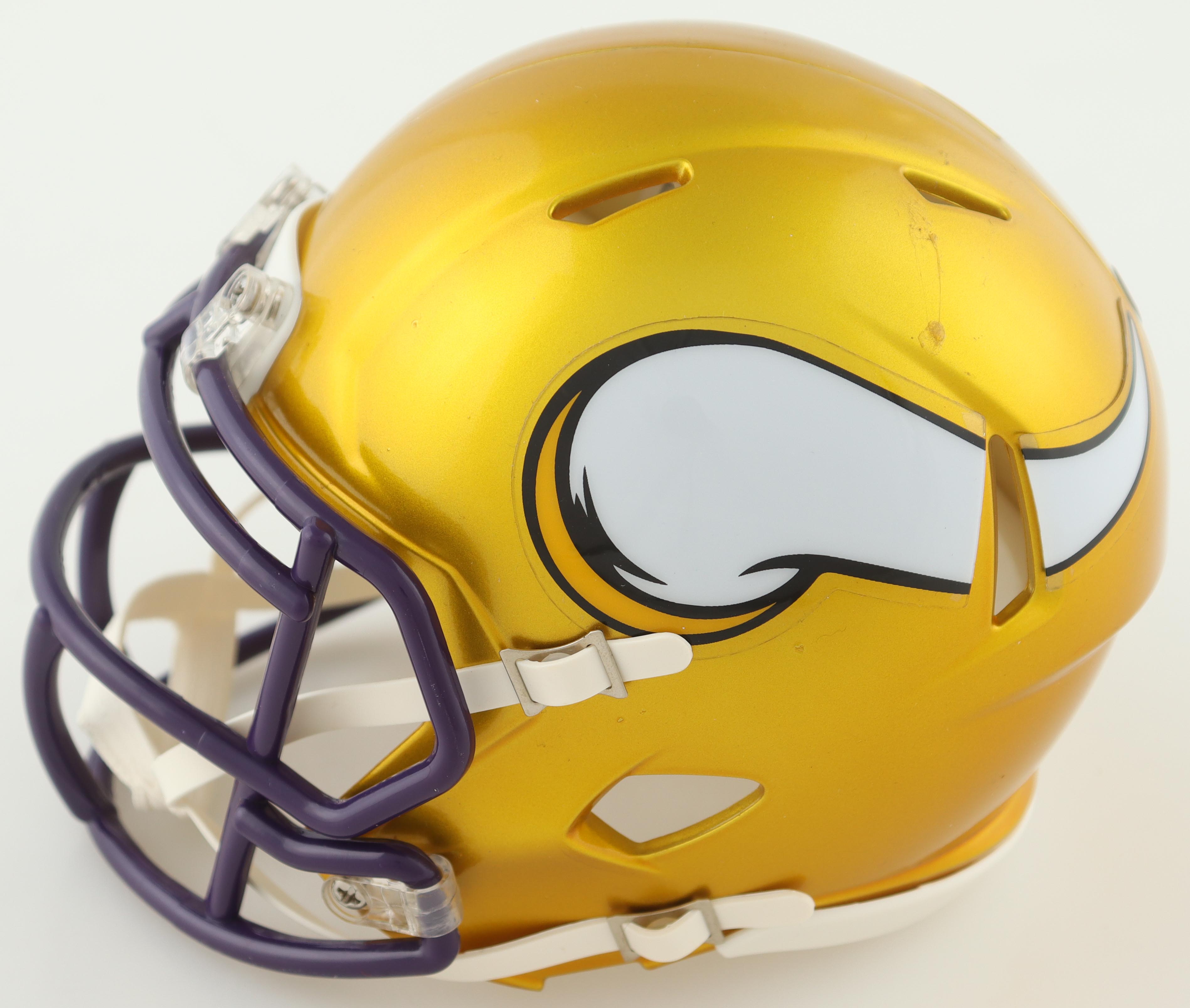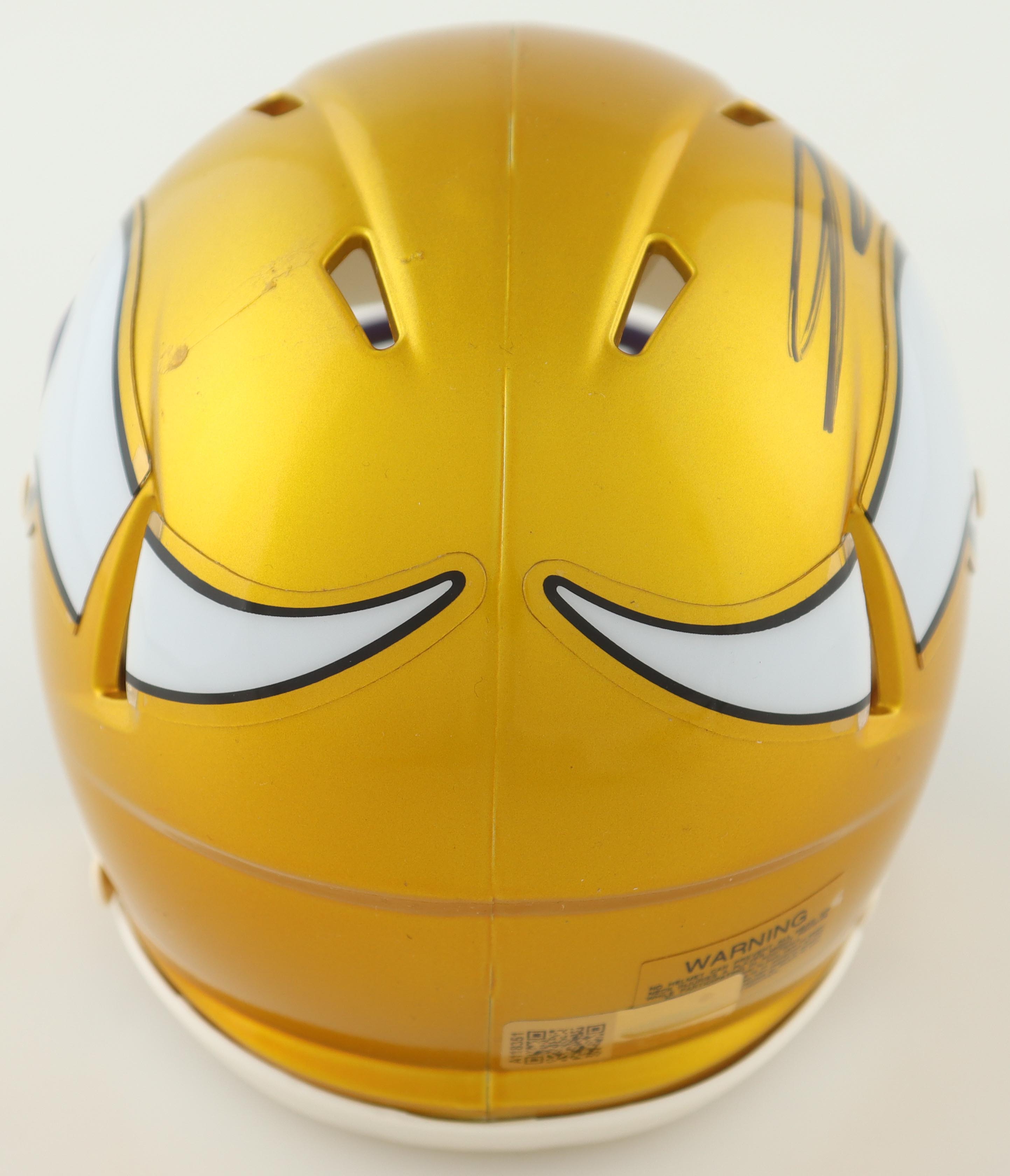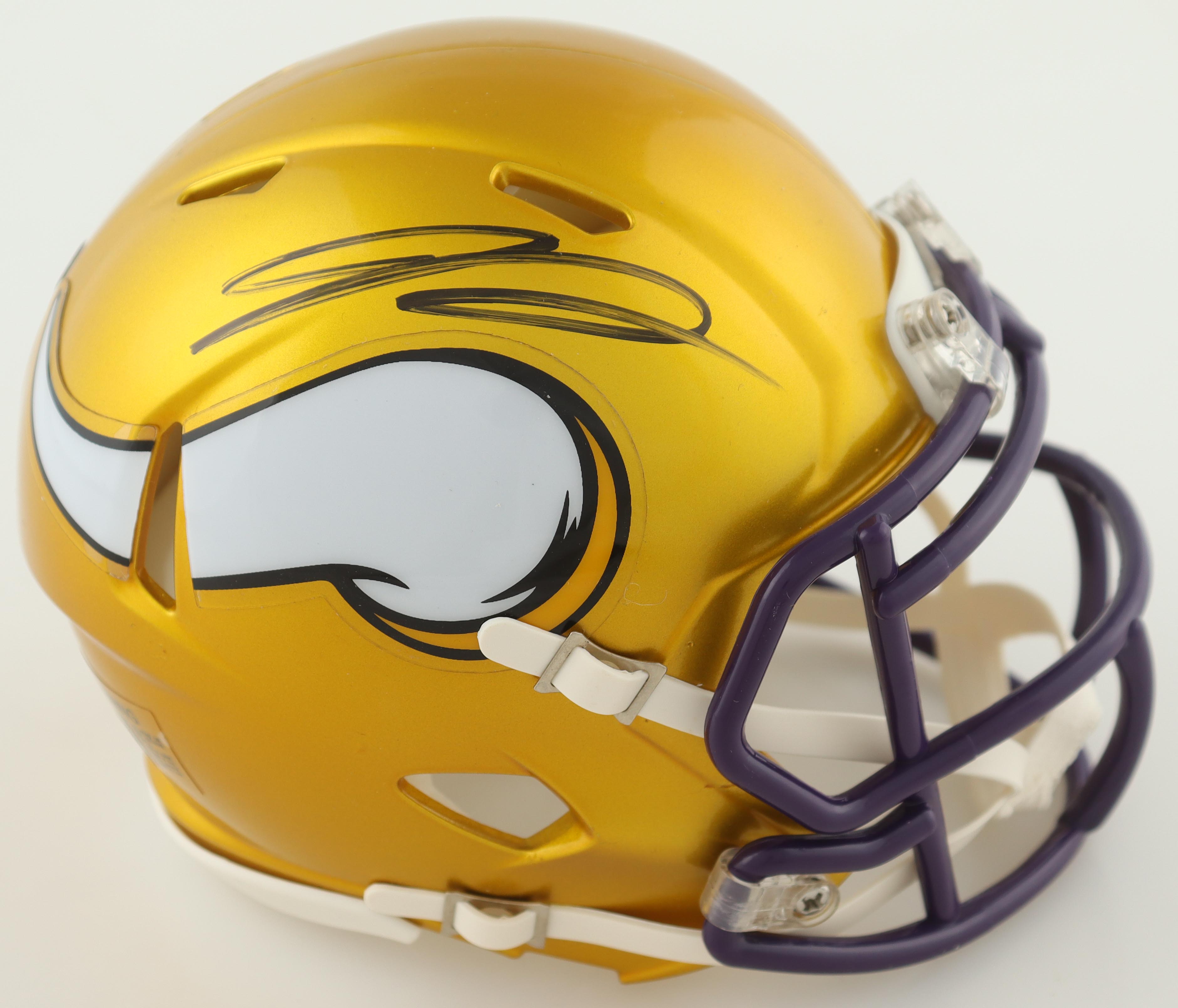 Riddell Minnesota Vikings Flash Alternate Speed Mini Helmet. Hand-signed by Jordan Addison.