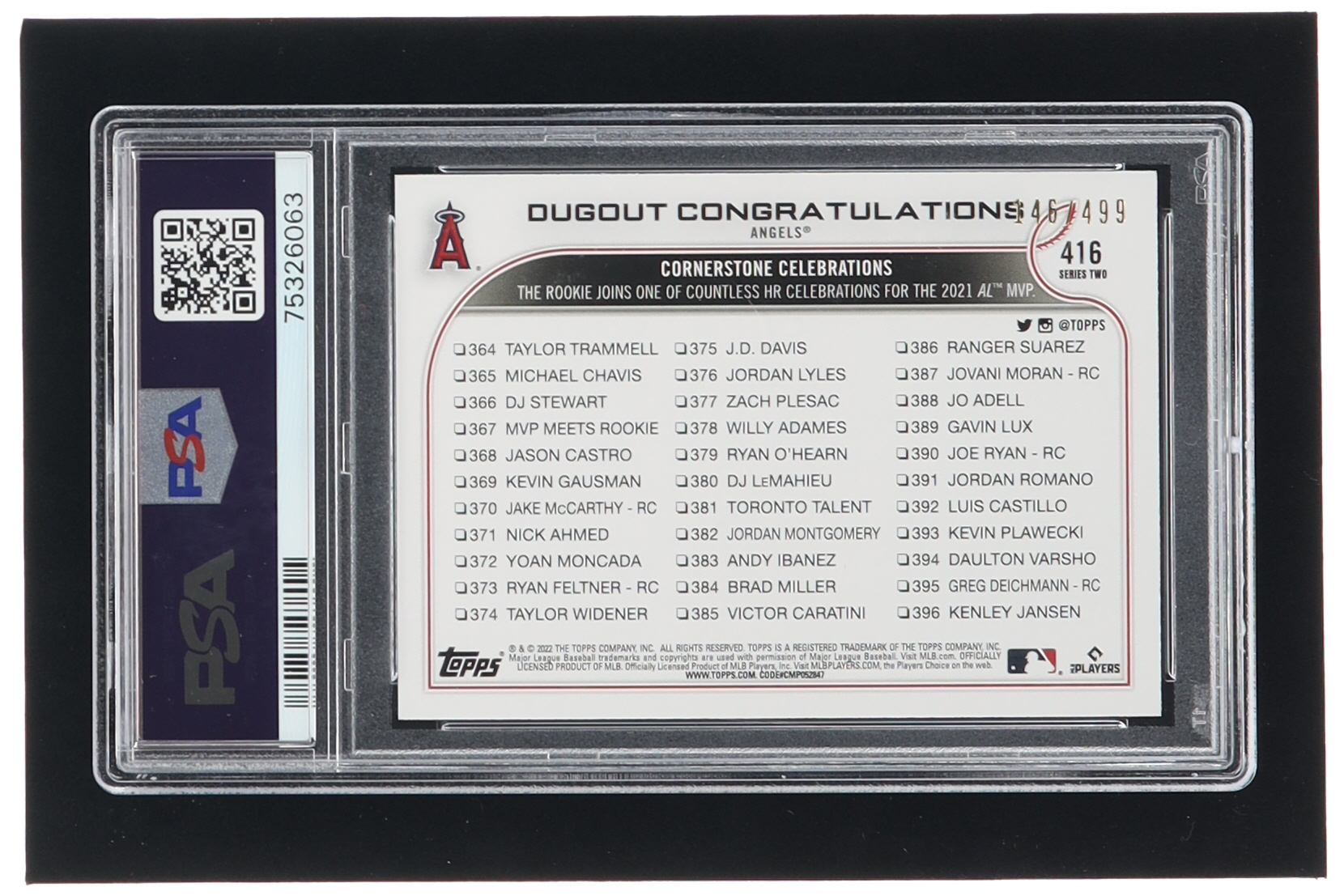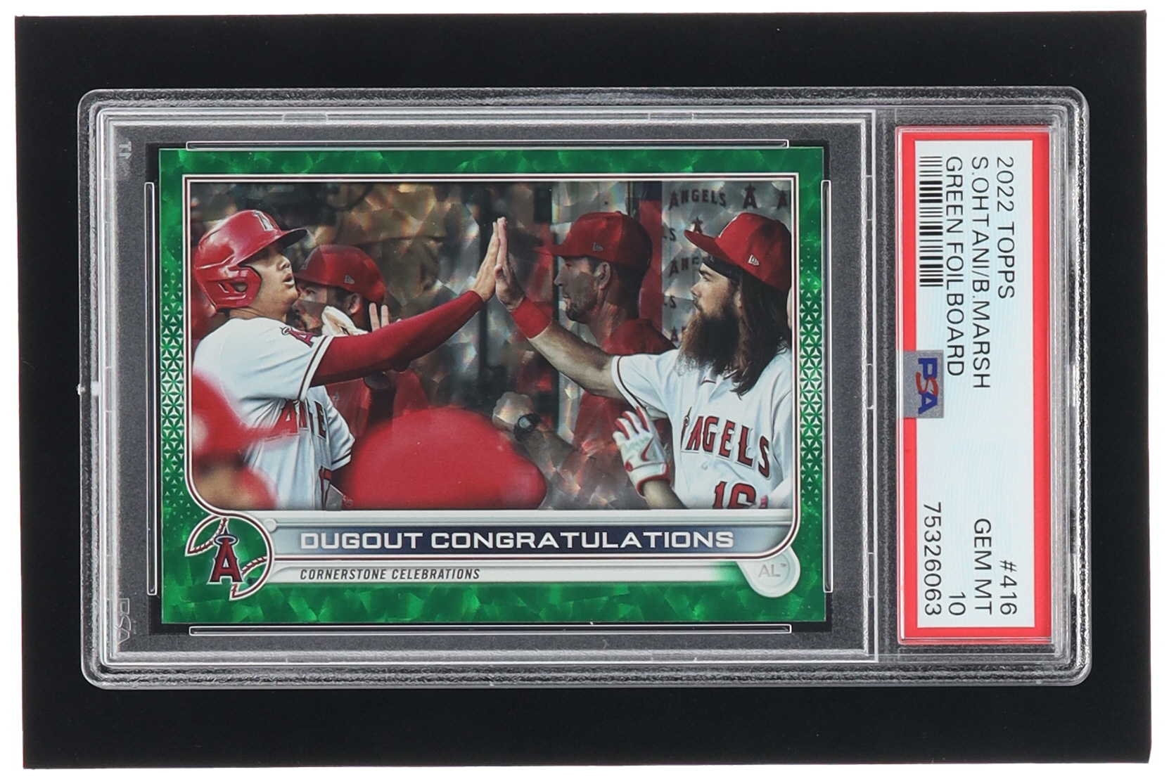 Shohei Ohtani / Brandon Marsh 2022 Topps Green Foilboard #416 / Dugout Congratulations #146/499 (PSA 10)