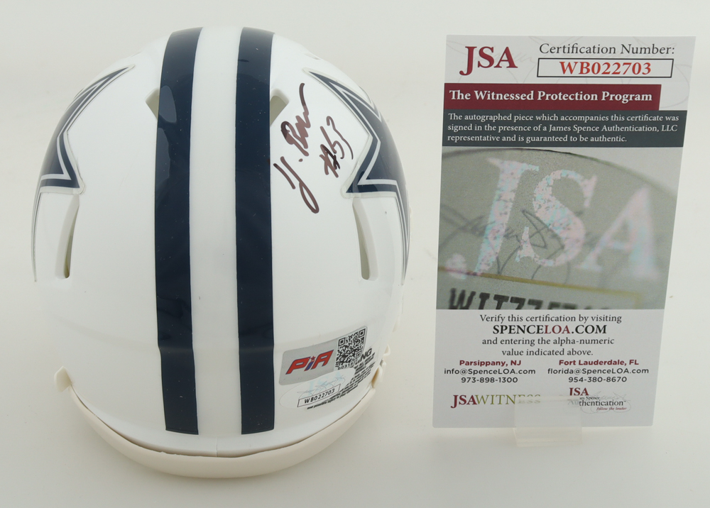 Riddell Dallas Cowboys Speed mini helmet. Hand-signed by Jalen Brooks.