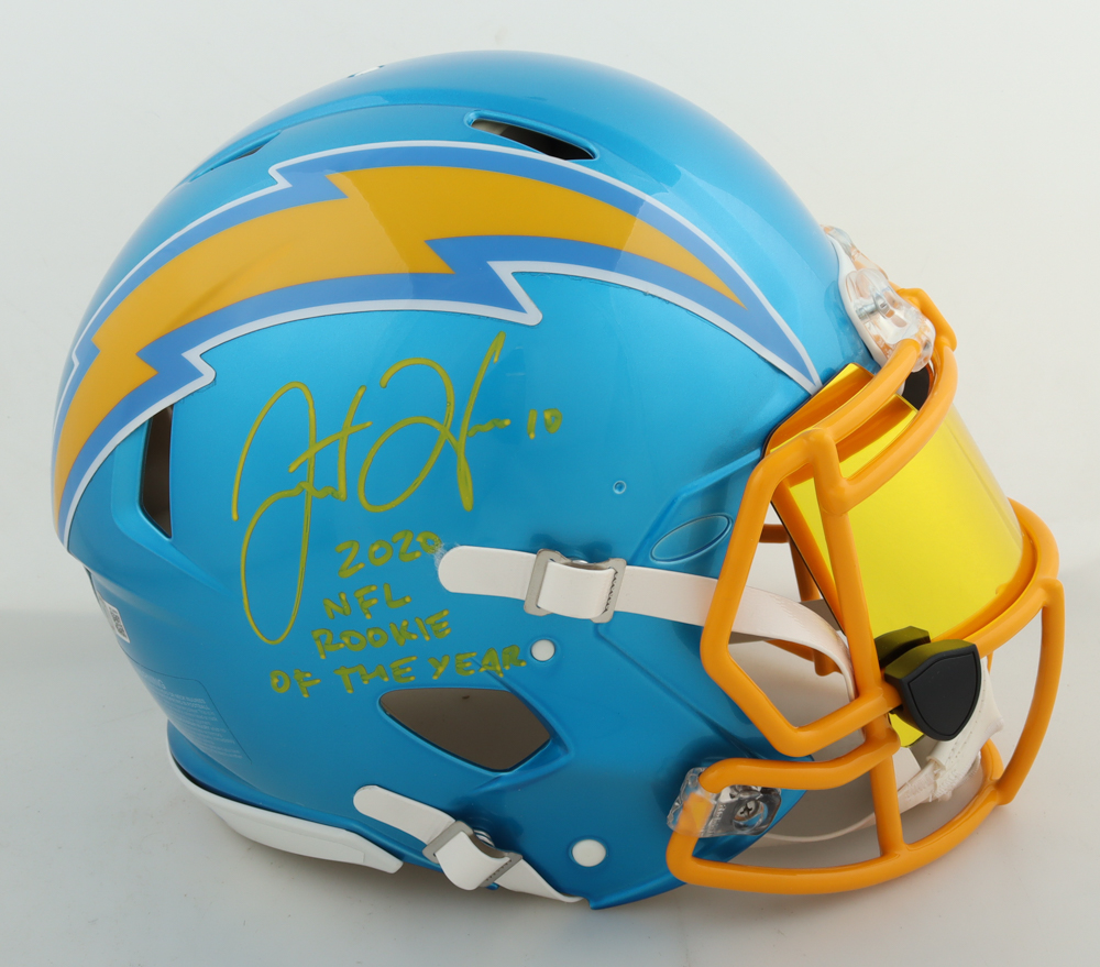 Justin Herbert Signed Chargers Full-Size Authentic On-Field Flash Alternate Speed Helmet With Visor Inscribed "2020 NFL Rookie Of The Year" (Beckett)