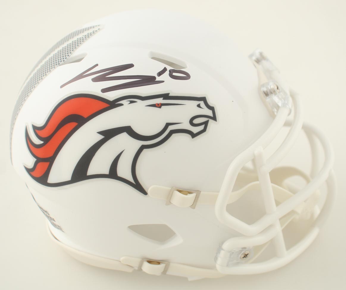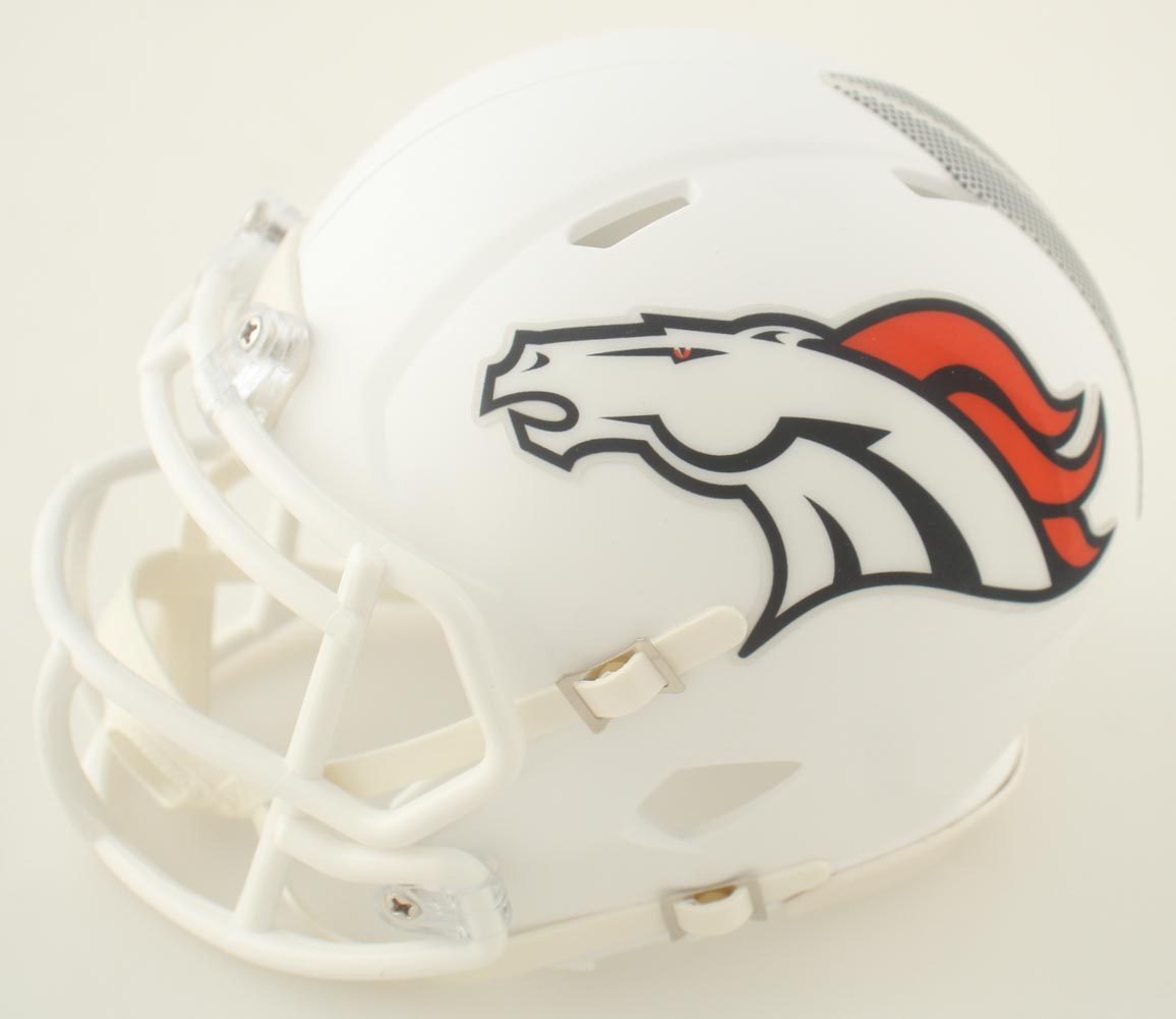 Riddell Denver Broncos Alternate speed mini helmet. Hand-signed by Bo Nix.