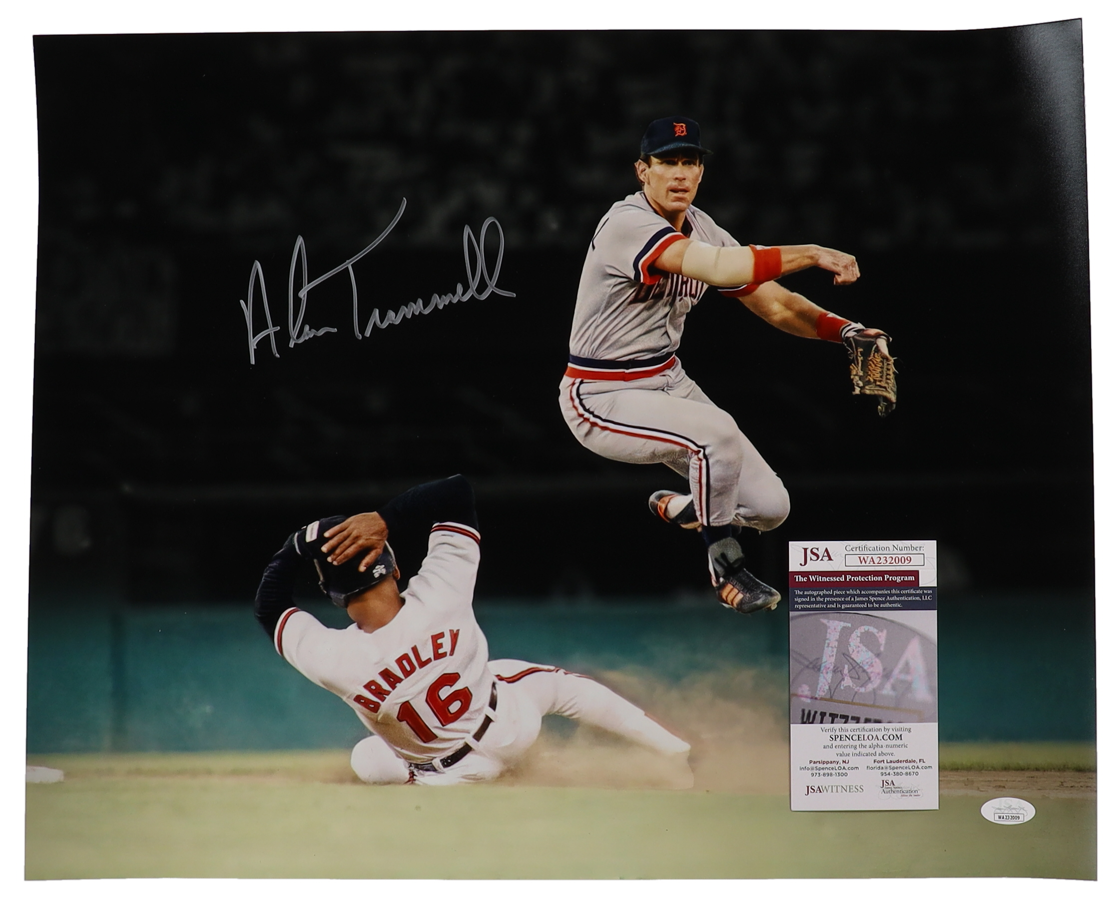 Photo measures 16" x 20" in size and has been hand-signed by Alan Trammell (Detroit Tigers, HOF).