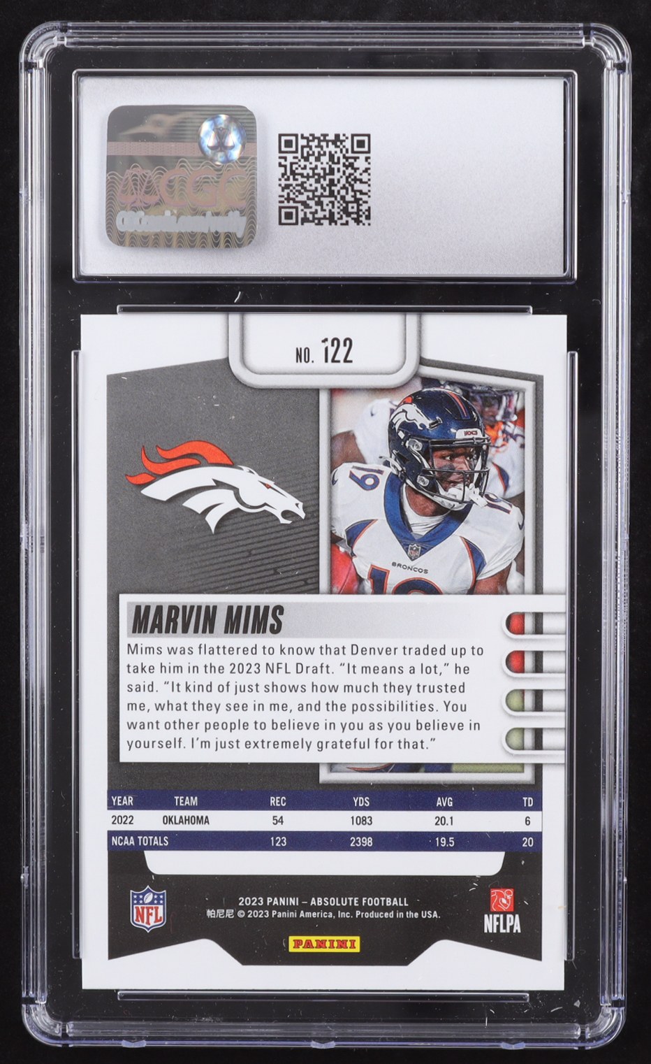 Marvin Mims 2023 Absolute Blue #122 RC (CGC 10)