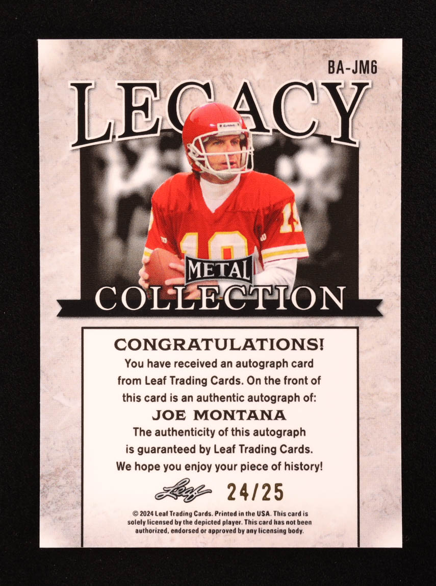 Joe Montana 2024 Leaf Legacy Collection #BA-JM6 Autograph SP Variation #24/25