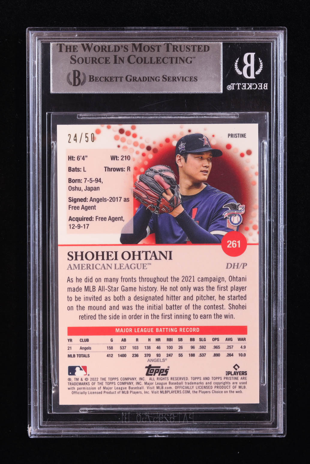 Shohei Ohtani 2022 Topps Pristine Gold Pristine Refractors #261 #24/50 (BGS 9)