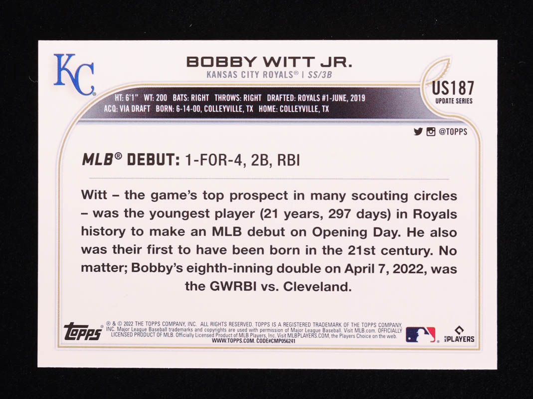 Bobby Witt Jr. 2022 Topps Update Rainbow Foil #US187 RD RC