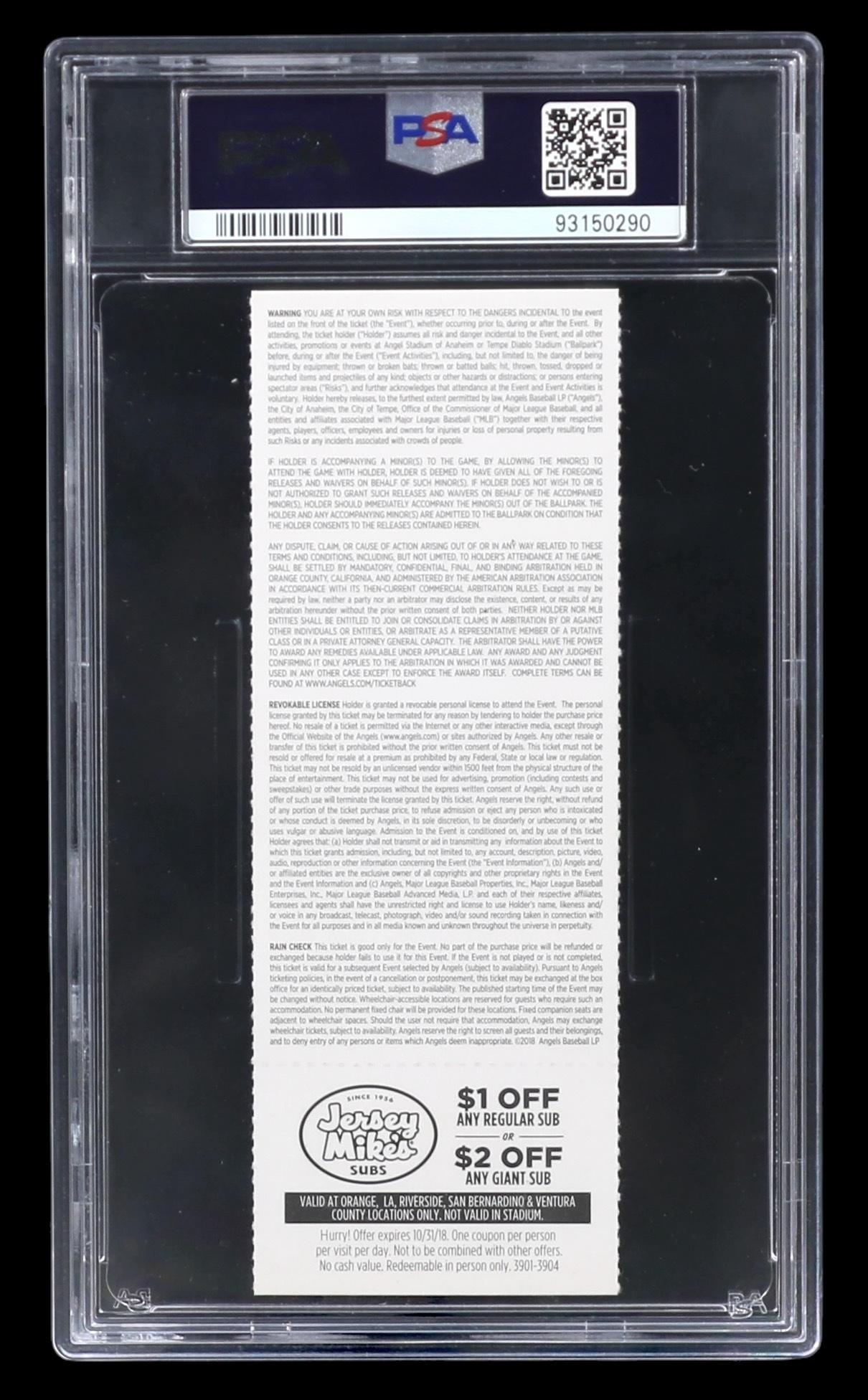 August 25, 2018 Los Angeles Angels game ticket has been hand-signed by Shohei Ohtani and has been graded PSA 10.