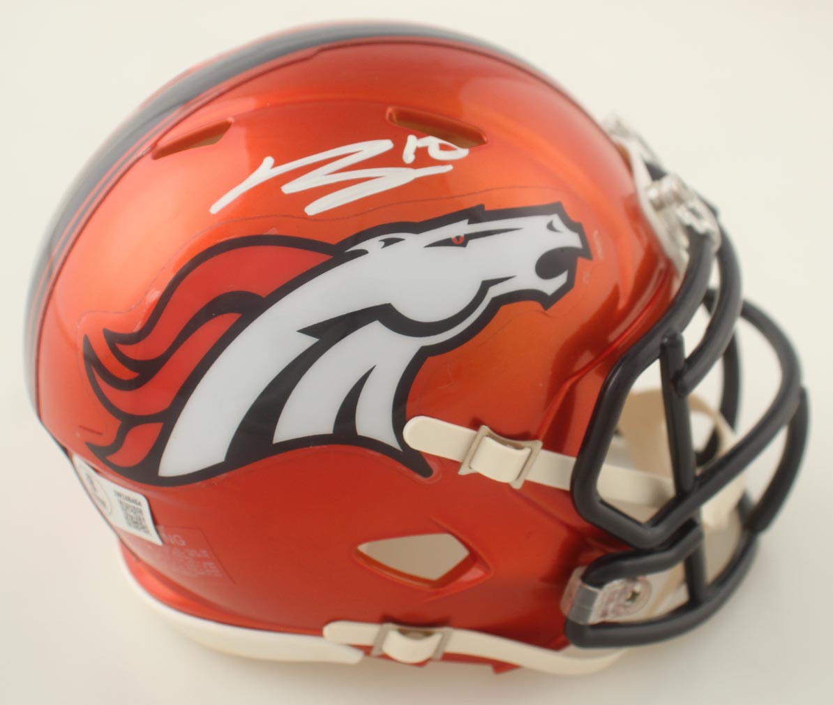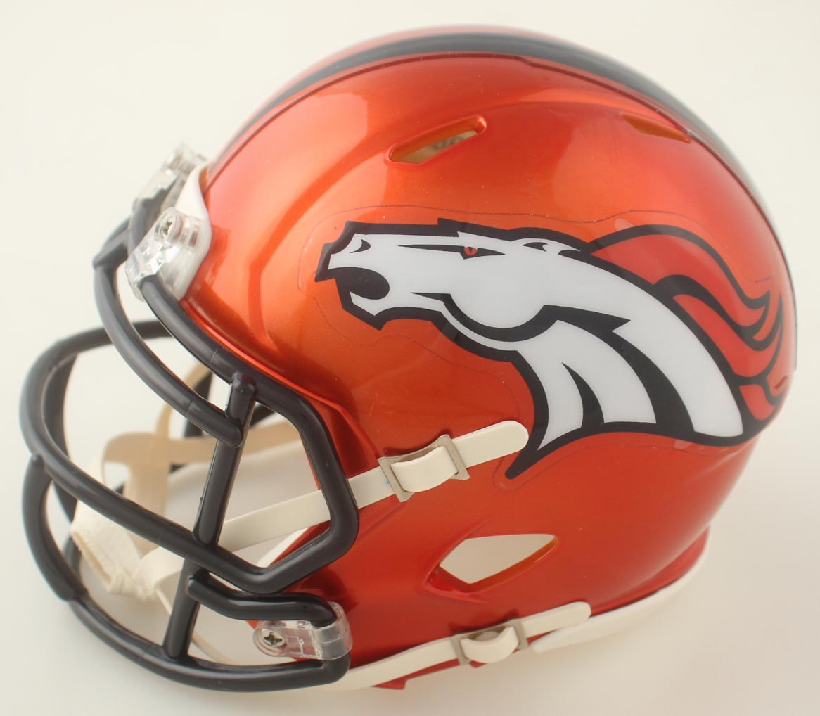 Riddell Denver Broncos Flash Alternate speed mini helmet. Hand-signed by Bo Nix.