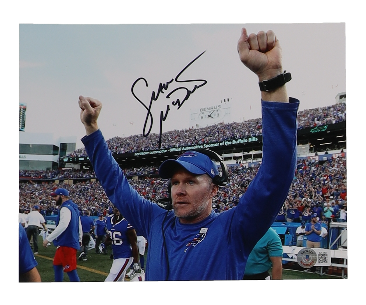 Photo measures 8" x 10" in size and has been hand-signed by Sean McDermott (Buffalo Bills).