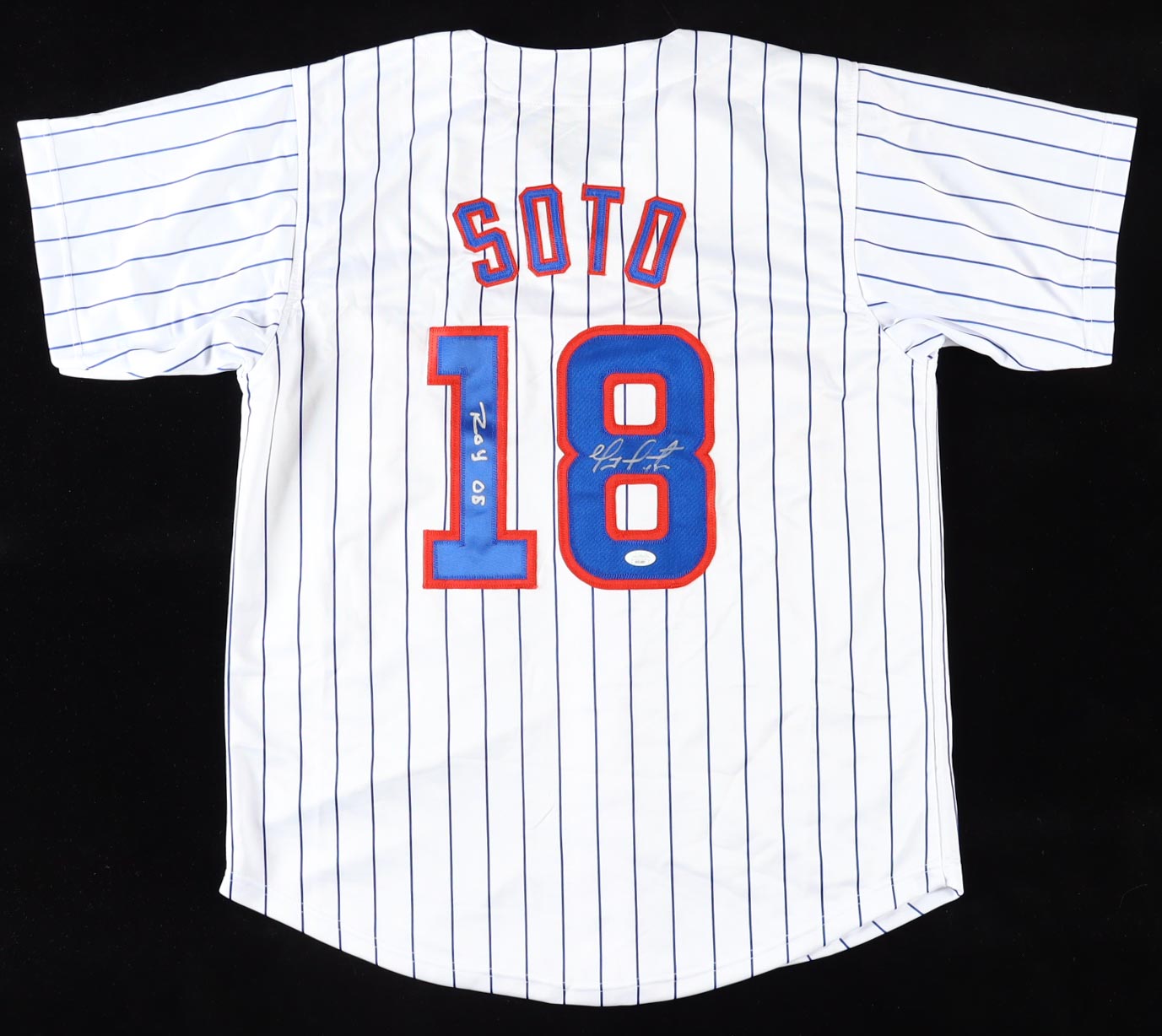 Custom jersey with everything sewn on, size XL. Hand-signed and inscribed by Geovany Soto.