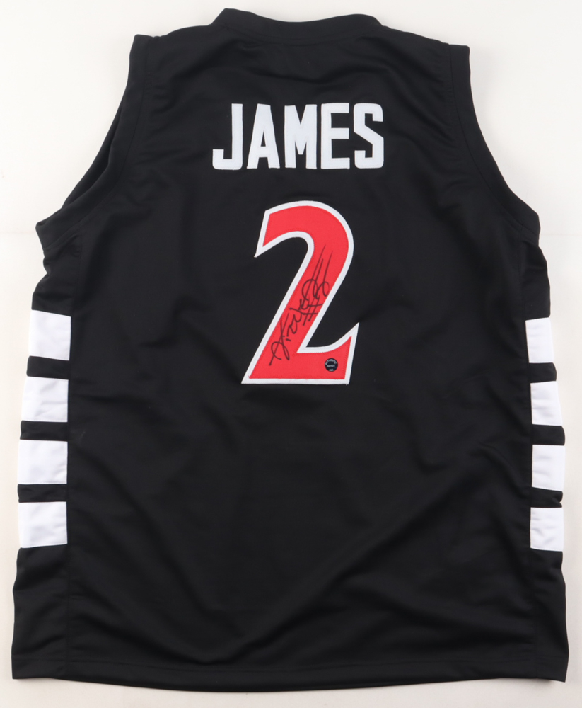 Custom jersey. Everything sewn on, size XL. Hand-signed by Jizzle James.