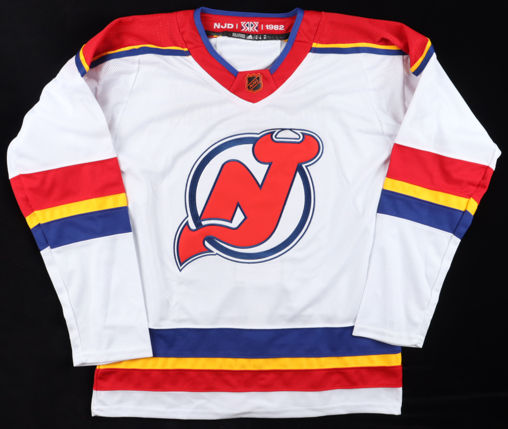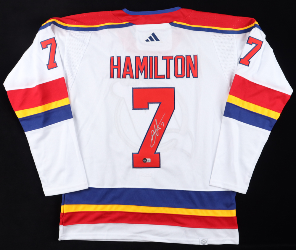 Custom jersey with everything sewn on, size XL. Hand-signed by Dougie Hamilton.