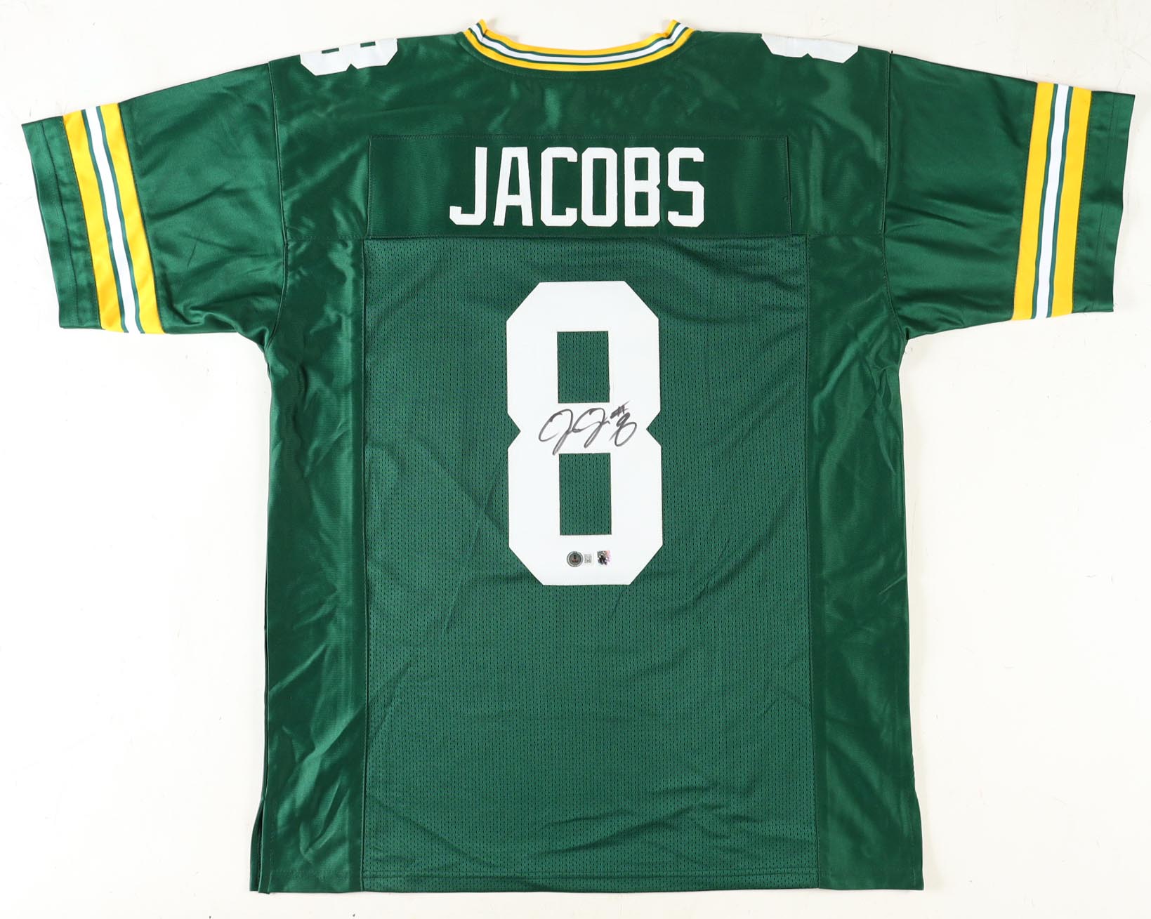 Custom jersey with everything sewn on, size XL. Hand-signed by Josh Jacobs.