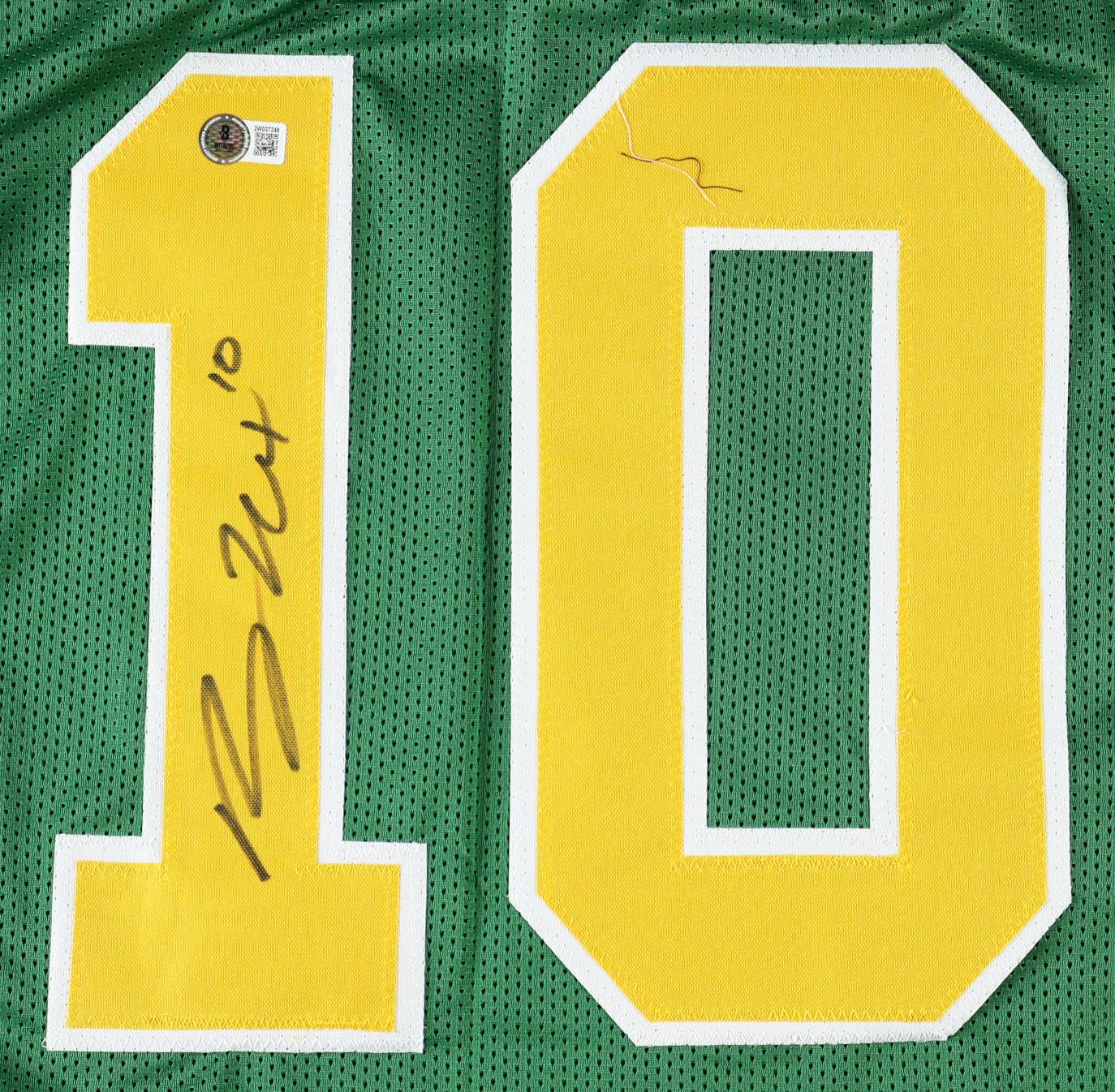 Custom jersey with everything sewn on, size XL. Hand-signed by Bo Nix.