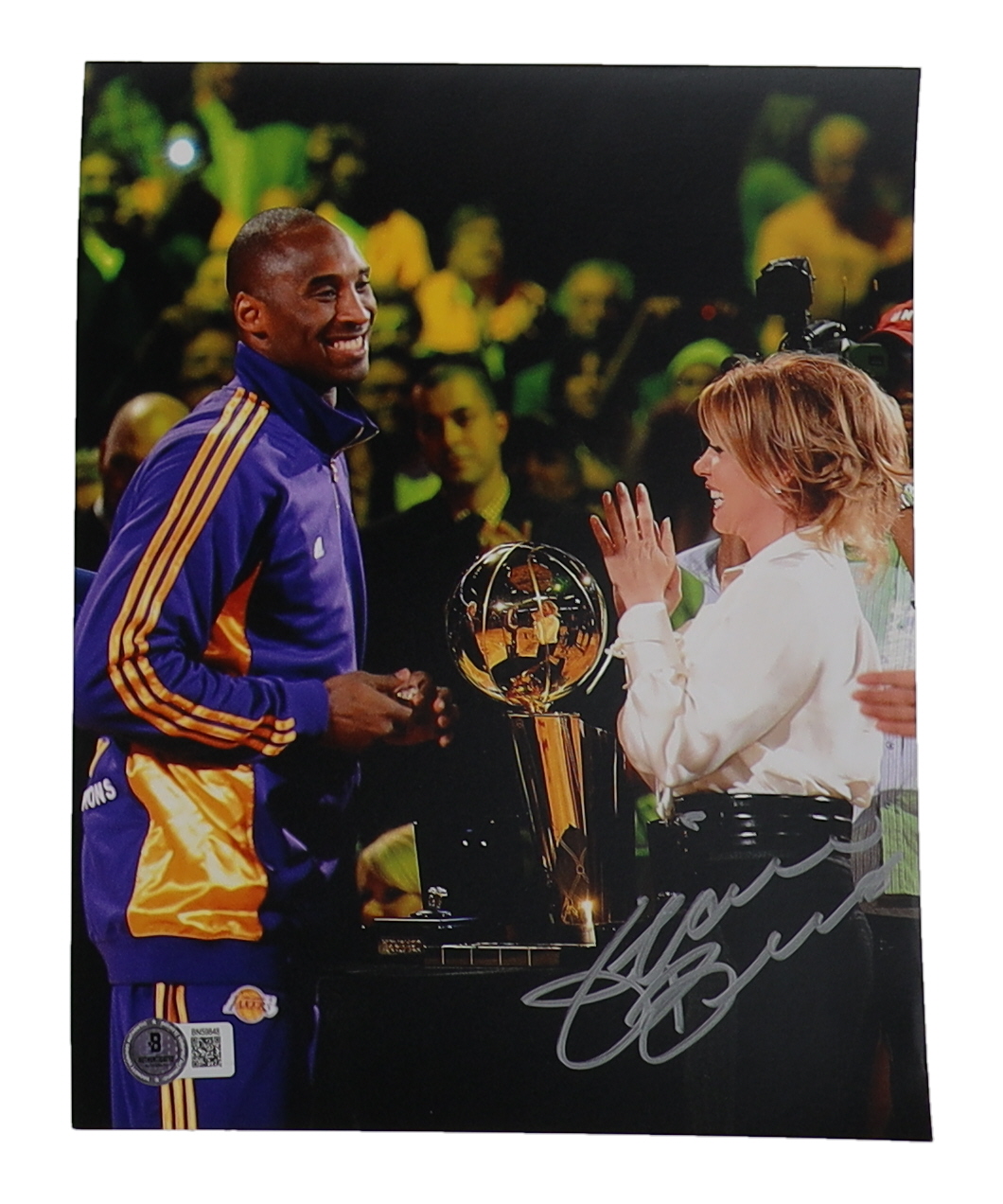 Photo measures 8" x 10" in size and has been hand-signed by Jeanie Buss.