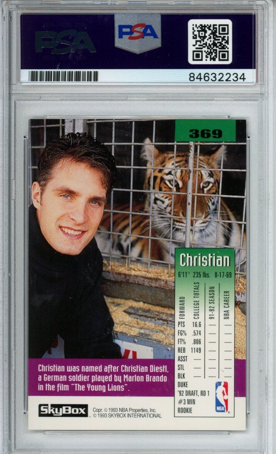 Christian Laettner Signed 1992-93 Skybox #369 RC (PSA)