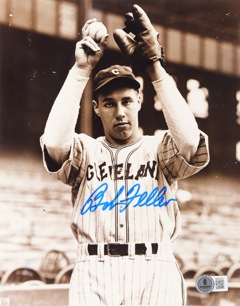 Photo measures 8" x 10" in size. Hand-signed by Bob Feller (D. 2010, Cleveland Indians, HOF).