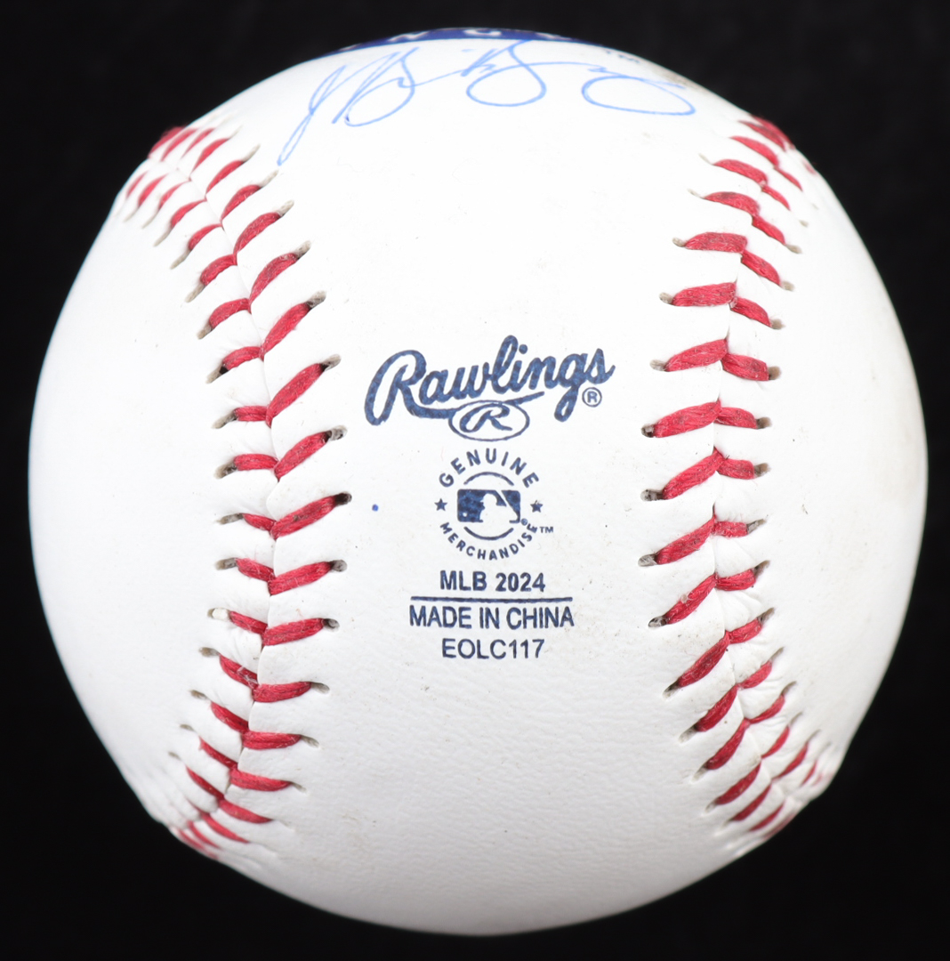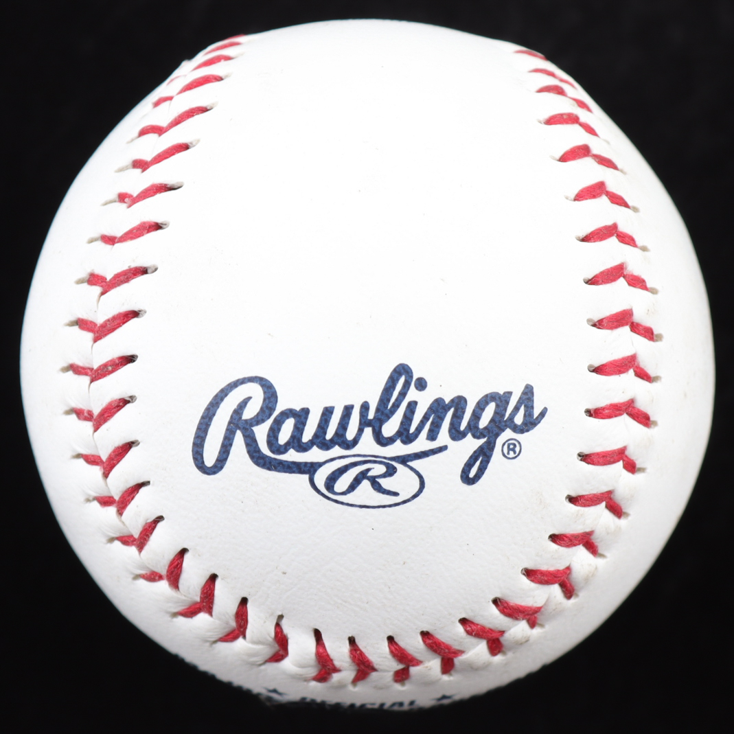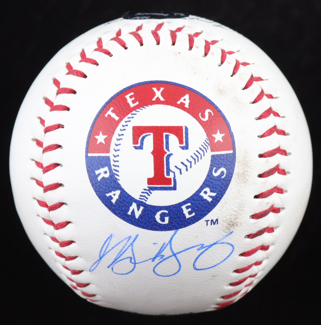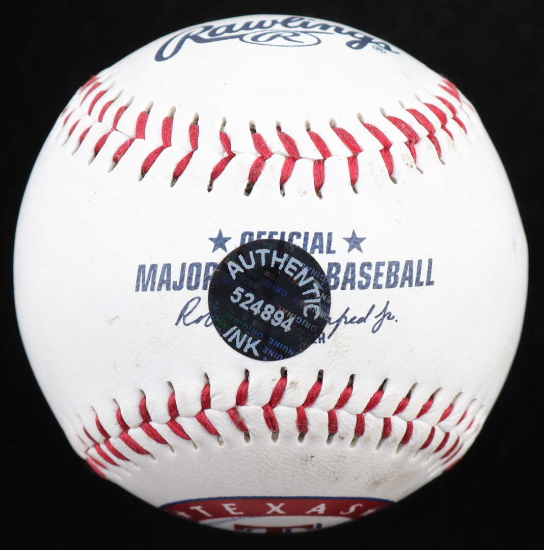Rawlings Official Major League baseball. Hand-signed by Michael Young (Texas Rangers). Please note, there is scuffing and staining on the baseball.