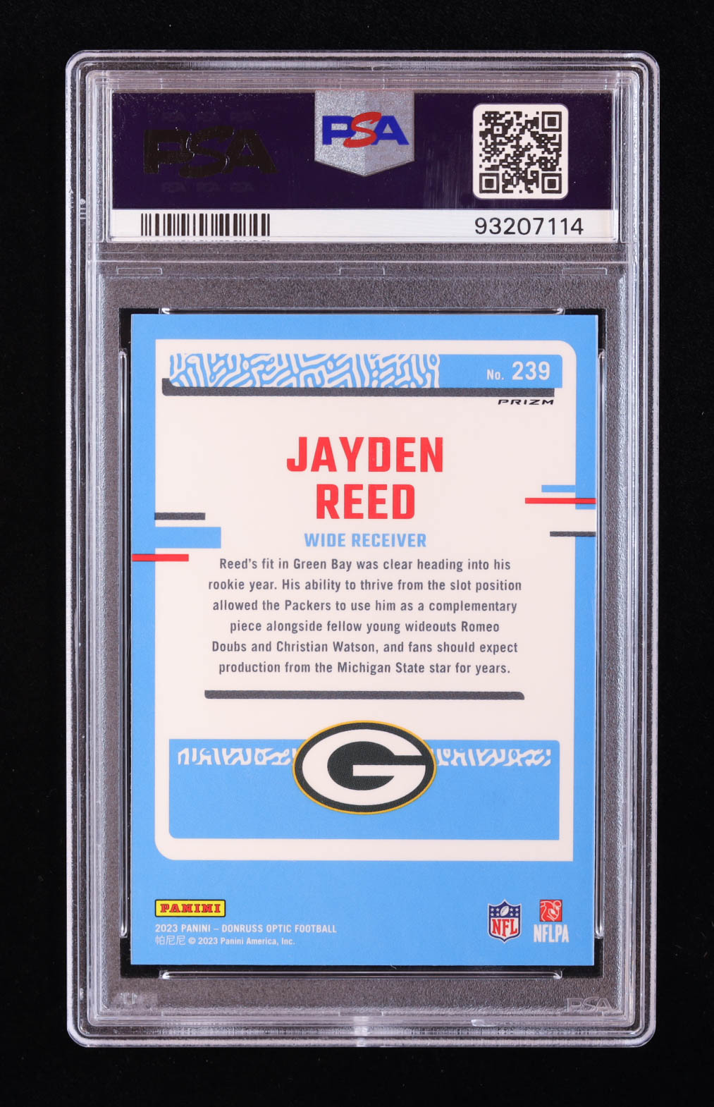 Jayden Reed 2023 Donruss Optic Holo #239 RR RC (PSA 10)