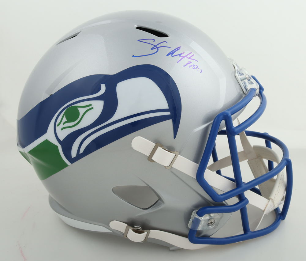Shaun Alexander Signed Seahawks Full-Size Throwback Alternate Speed Helmet (Beckett)