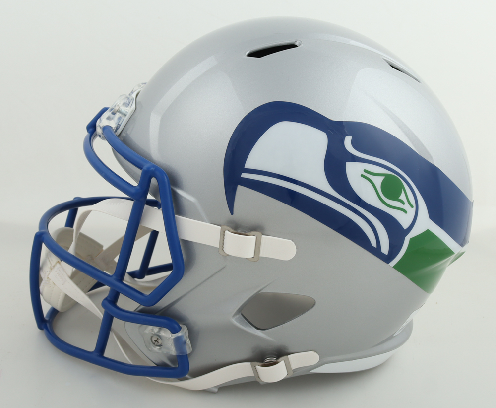 Riddell Seattle Seahawks full-size throwback alternate speed replica helmet. Hand-signed by Shaun Alexander.