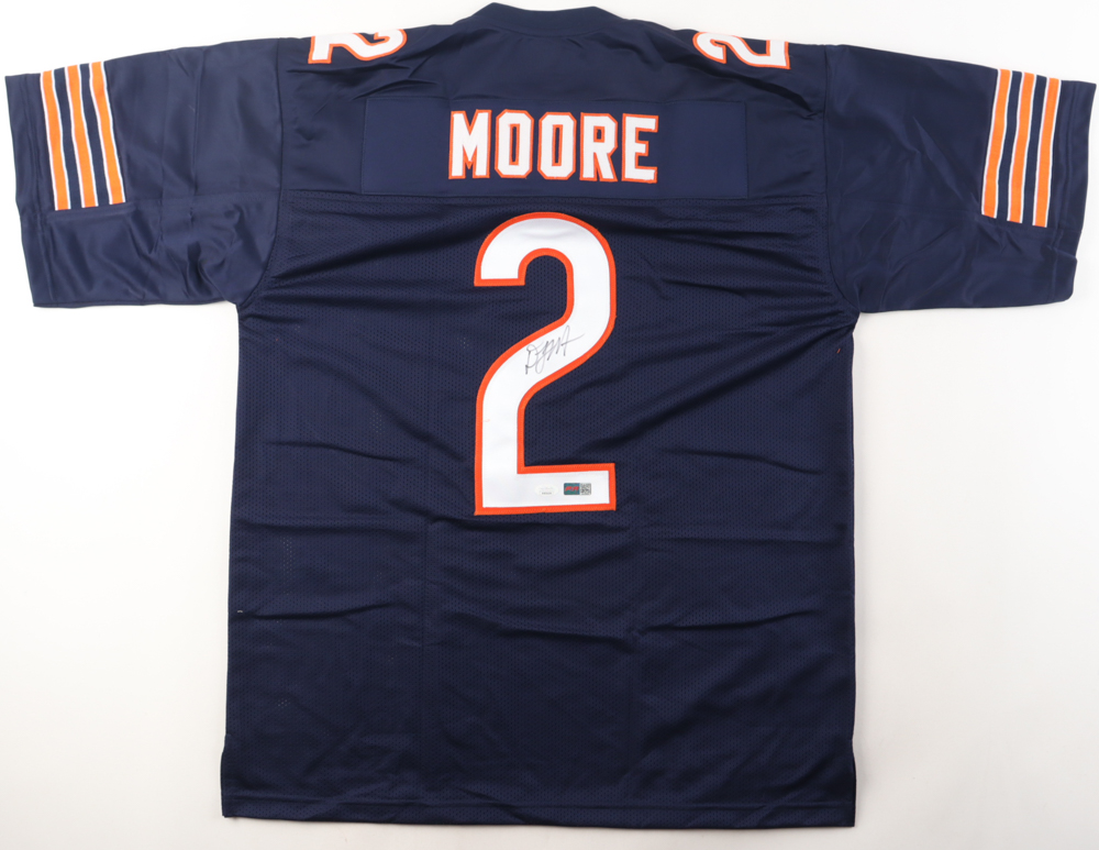 Custom jersey with everything sewn on, size XL. Hand-signed by D. J. Moore.