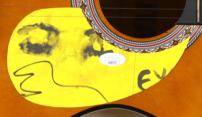 Acoustic guitar measures approximately 39" in length and has been hand-signed on the pickguard by Ed Sheeran.