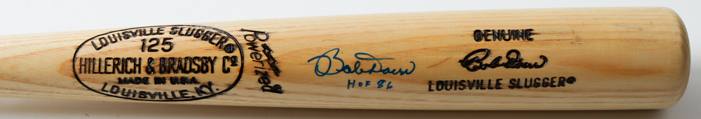 Louisville Slugger Hillerich & Bradsby Player Model Baseball Bat has been hand-signed and inscribed by Bobby Doerr (D. 2017, Boston Red Sox, HOF). Please note the baseball bat is scuffed.