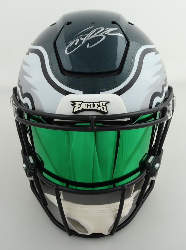 Riddell Philadelphia Eagles full-size replica Speedflex helmet with visor. Hand-signed by Saquon Barkley.