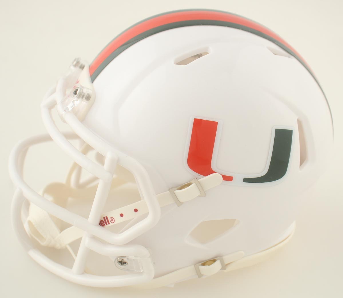 Riddell Miami Hurricanes Speed mini helmet. Hand-signed by Frank Gore.