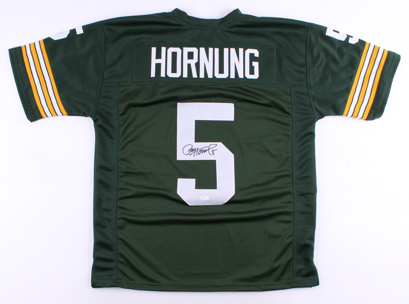 Custom on-field style jersey. Everything is sewn on, size XL. Hand-signed in black felt-tip pen by Paul Hornung (HOF).