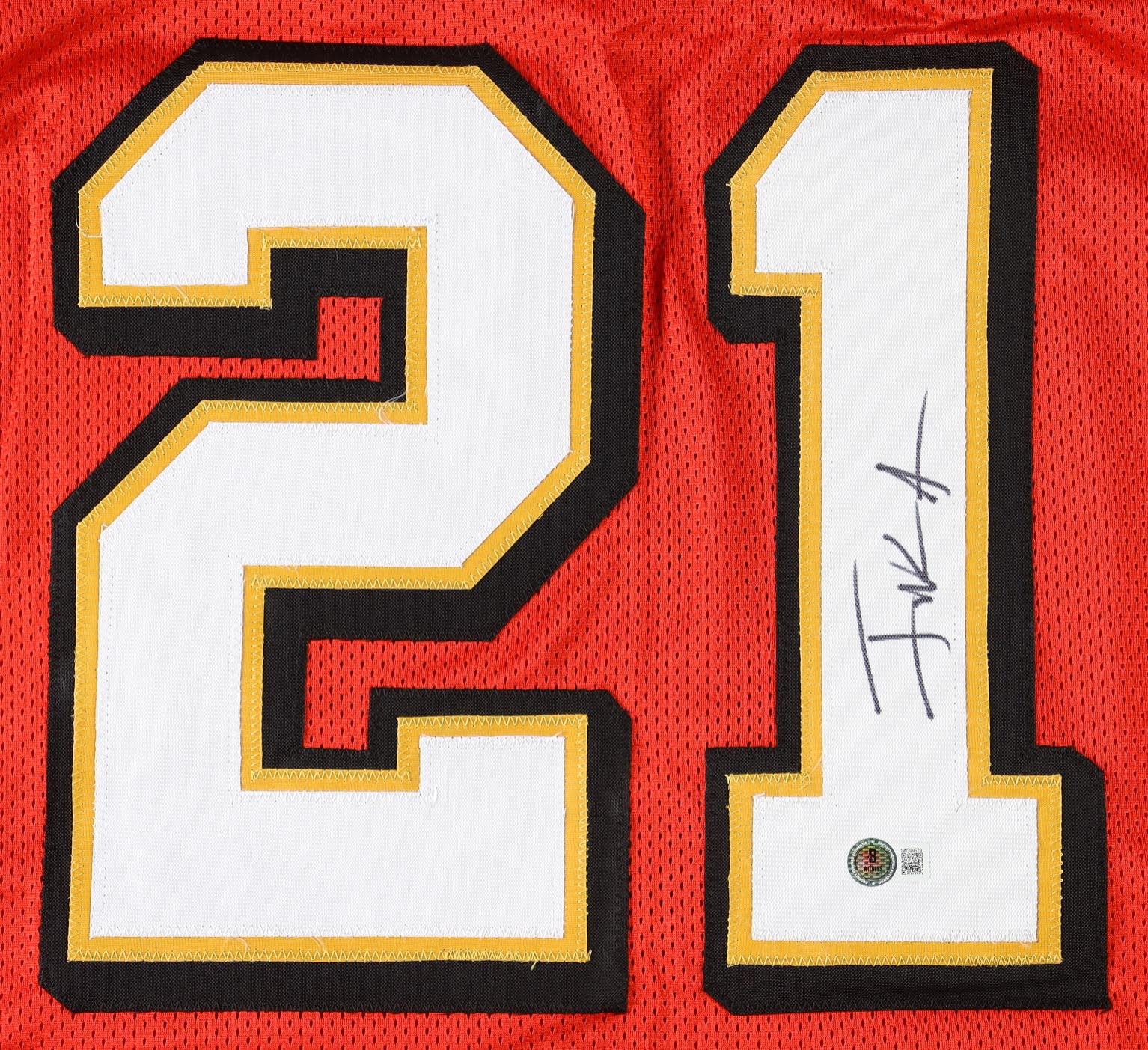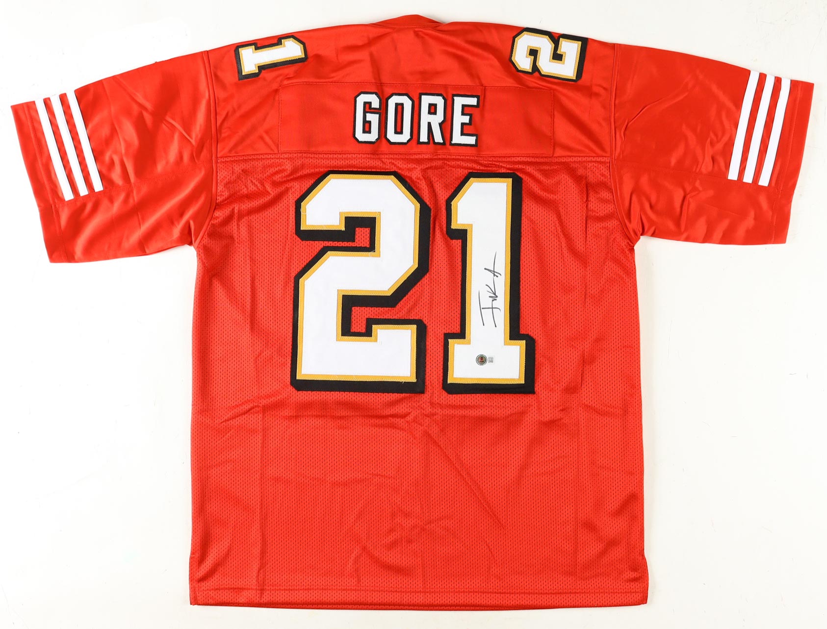 Custom jersey with everything sewn on, size XL. Hand-signed by Frank Gore.