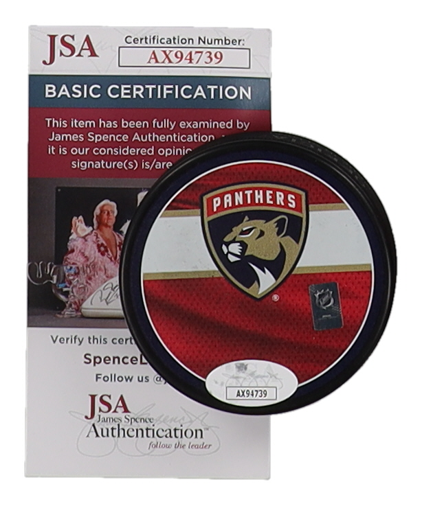 Aleksander Barkov Signed Panthers Logo Hockey Puck (JSA)