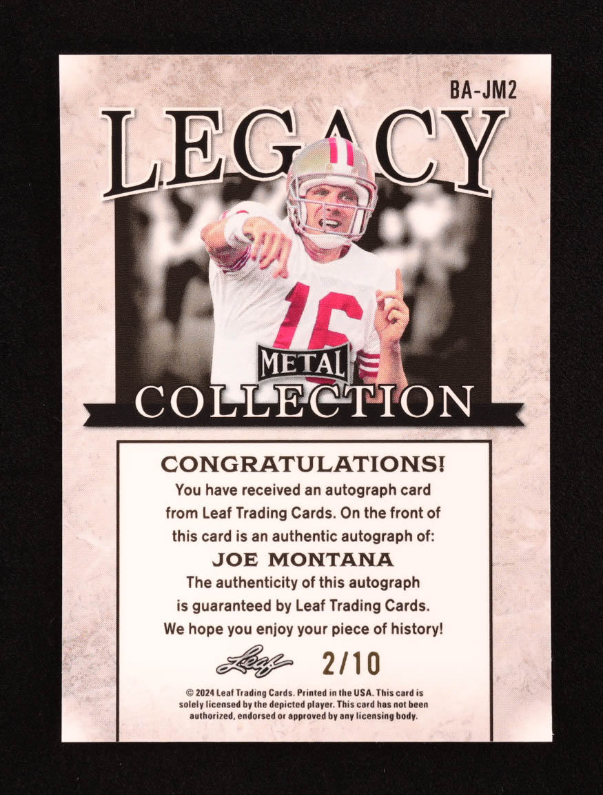 Joe Montana 2024 Leaf Legacy Collection #BA-JM2 Autograph SP Variation #2/10